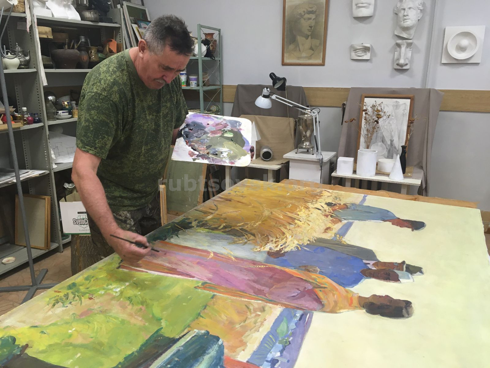 Её размеры довольно велики: 140x200 см. Картина была доставлена в Рубцовск из Новониколаевского Сельского Дома культуры для проведения необходимых реставрационных работ. Примечательно, что на картине запечатлено историческое событие, которое произошло в начале второй половины 20 века: приезд премьер-министра Индии Джавахарлала Неру и его дочери Индиры Ганди в Алтайский край. С момента визита Джавахарлала Неру и Индиры Ганди в СССР прошло 66 лет.
