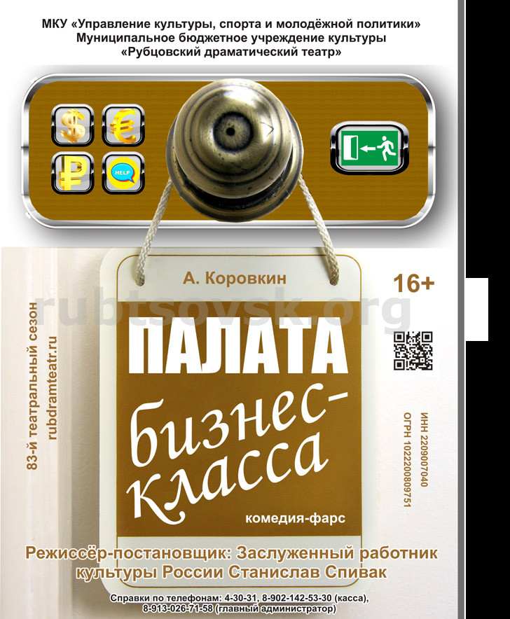 К закрытию сезона в Рубцовском драматическом театре готовят для зрителей очередной приятный сюрприз – спектакль по пьесе популярного драматурга Александра Коровкина «Палата бизнес-класса».