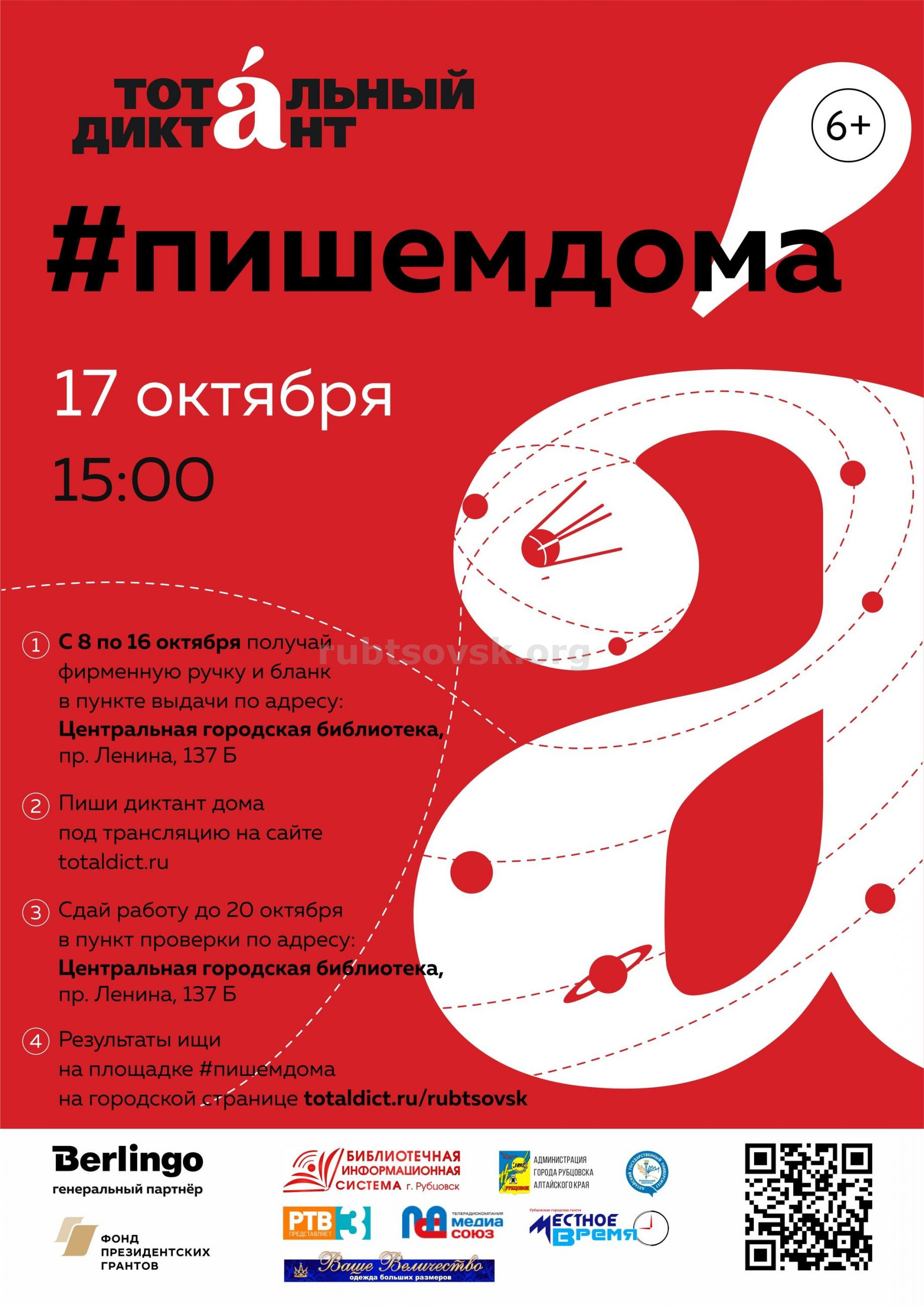Поскольку эпидемиологические ограничения полностью не сняты, Тотальный диктант предлагает своим участникам еще один способ принять участие в акции ― компромиссный между онлайном и офлайном решение «#пишемдома». Атмосферу настоящего диктанта помогут создать не только диктаторы в трансляции, но и бланки и фирменные ручки Тотального диктанта от генерального партнёра Berlingo.