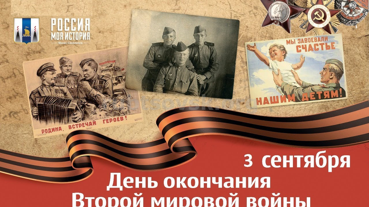3 сентября отмечают День воинской славы России – День окончания Второй мировой войны. Соответствующий Указ был подписан Президентом Российской Федерации Владимиром Путиным. В учреждениях культуры пройдет цикл мероприятий, посвященных этой знаменательной исторической дате. Все программы, конкурсы и концерты, посвященные Дню окончания Второй мировой войны, проходят в рамках Года Памяти и Славы.