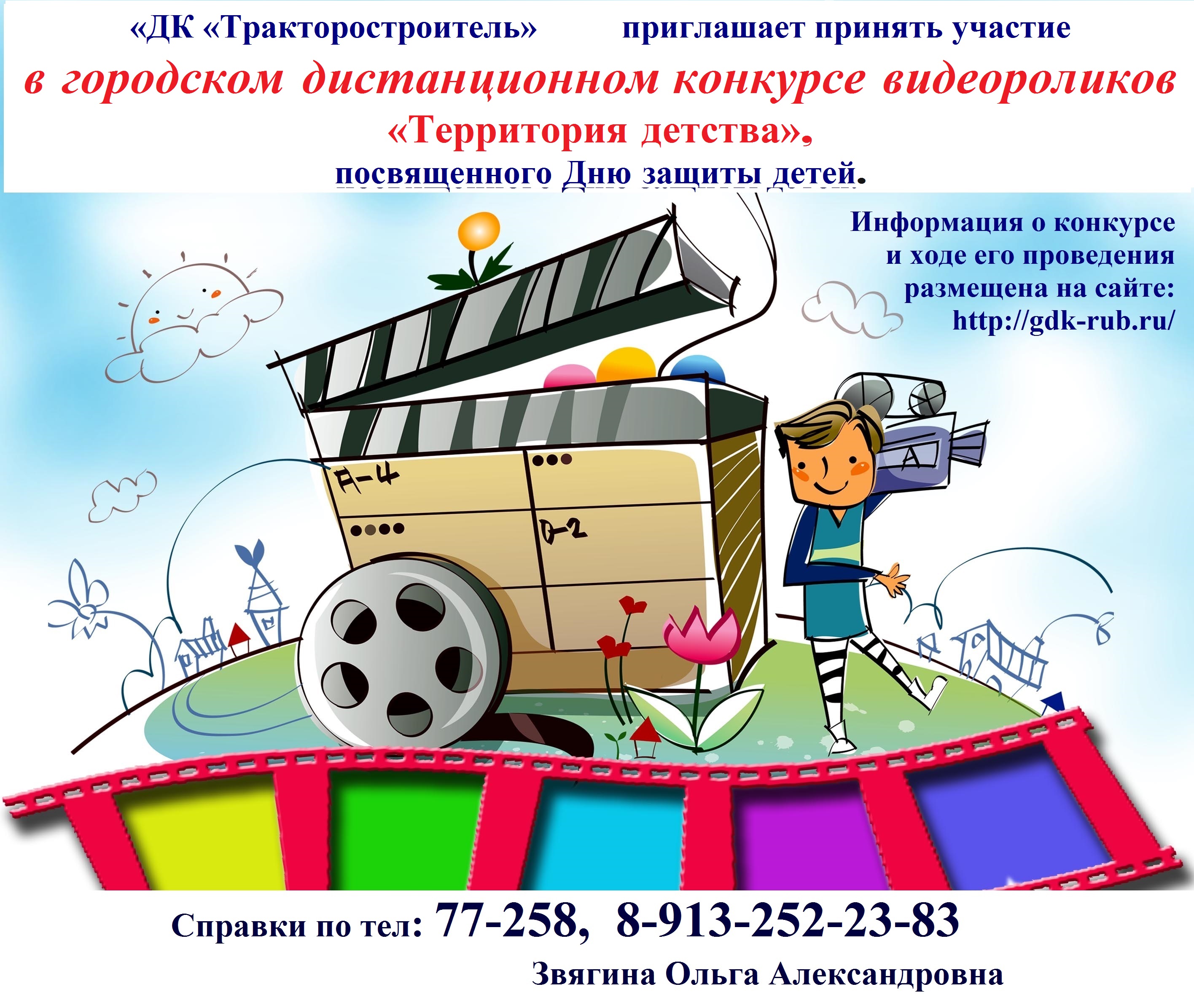 1 июня отмечается Международный день защиты детей. Это один из самых старых международных праздников, его отмечают во всем мире с 1950 года. По праву, этот праздник можно назвать самым детским! Международный день защиты детей - это напоминание взрослым о самом главном - детском счастье! «ДК «Тракторостроитель» приглашает принять участие в городском конкурсе видеороликов «Территория детства», посвященного Дню защиты детей.