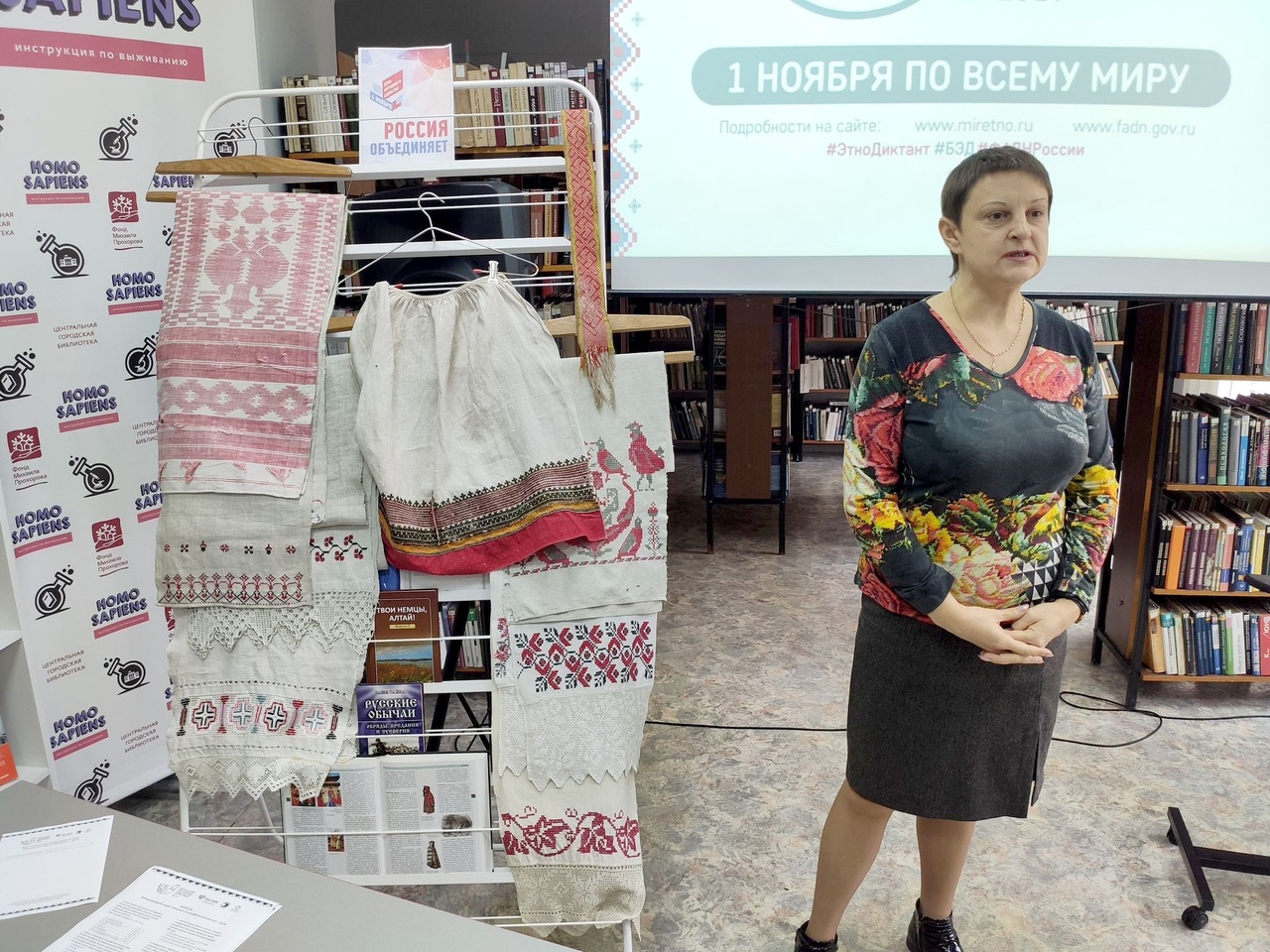 1 ноября на площадке Центральной городской библиотеки состоялась международная просветительская акция «Большой этнографический диктант». В этом году акция приурочена ко Дню народного единства, который отмечается 4 ноября. Диктант проводят для того, чтобы оценить знания населения в области этнографии и привлечь внимание к этой науке, занимающей важное место в гармонизации межэтнических отношений. Свой уровень этнографической грамотности в этот день пришел проверить 31 рубцовчанин.
