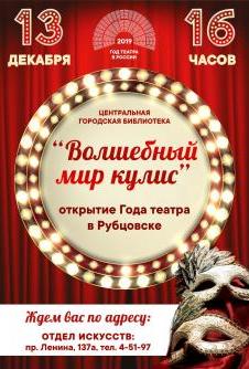 13.12 – 16 «Волшебный мир кулис» - открытие Года театра в Рубцовске (12+) Центральная городская библиотека*