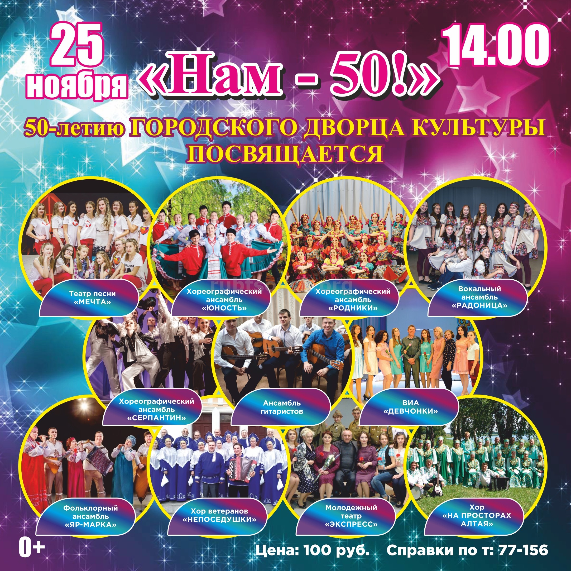 Приходите в ГДК 25 ноября, в 14.00, чтобы вместе отметить красивую и радостную дату ‒ 50 лет со дня открытия. Справки по телефону: 77-156.