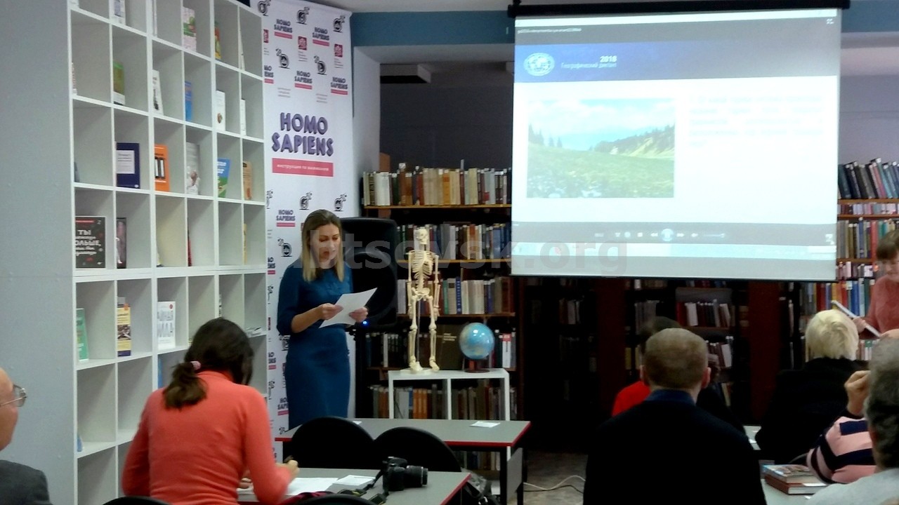 В Центральной библиотеке Географический диктант вела наш постоянный партнер - Инна Александровна Корчагина, доцент, кандидат географических наук (АлтГУ). А одним из участников стал бывший член Русского географического общества, краевед Владимир Владимирович Кузнецов