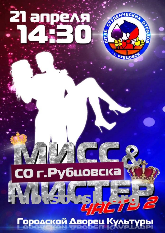 Как сообщает официальный сайт газеты "Местное время", 21 апреля в Городском дворце культуры Рубцовска в 14:30 пройдёт конкурс красоты и творчества “Мисс и Мистер студенческие отряды-2018”.