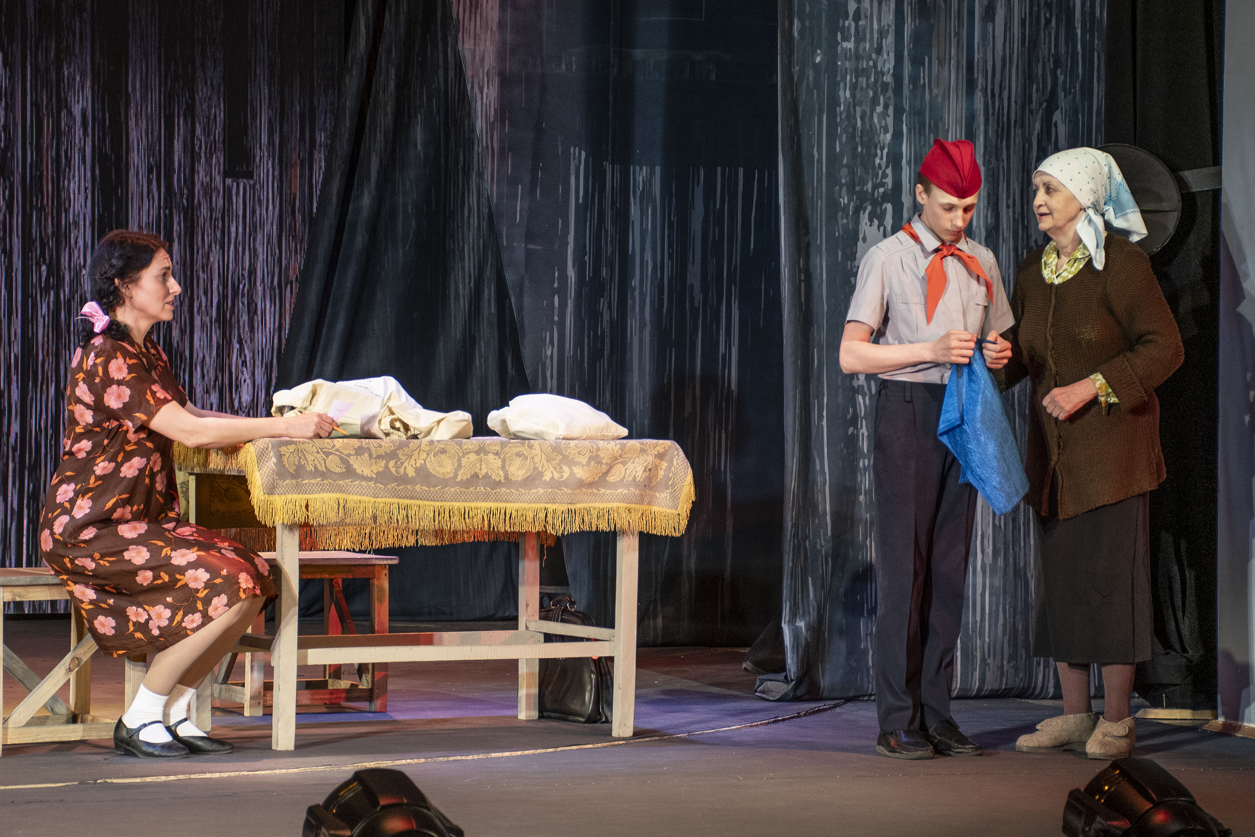 Новый 88-й творческий театральный сезон Рубцовский драматический театр открыл спектаклем «Синий платочек» по пьесе Валентина Катаева. Она была написана и поставлена в период Великой Отечественной войны, но и сегодня эта пьеса актуальна. Жены, матери и сестры шлют посылки в зону СВО, ждут с фронта весточку и возвращения любимых — мужей, сыновей и братьев. Артисты театра трогательно передают теплоту чувств и ту атмосферу, о которой пишет драматург Валентин Катаев. Режиссер-постановщик спектакля — Константин Яковлев.
