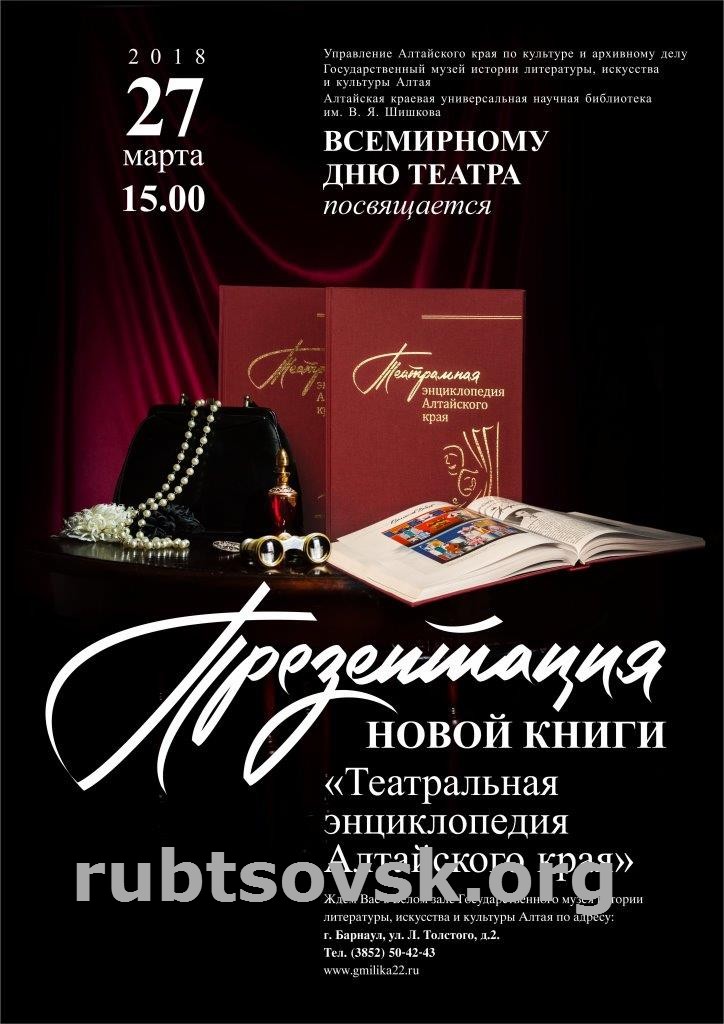 Часть материалов посвящена развитию театрального искусства в городе Рубцовске. Среди авторов многочисленных статей данной тематики необходимо выделить материалы главного специалиста по научной деятельности Краеведческого музея Марины Анатольевны Кагикиной.
