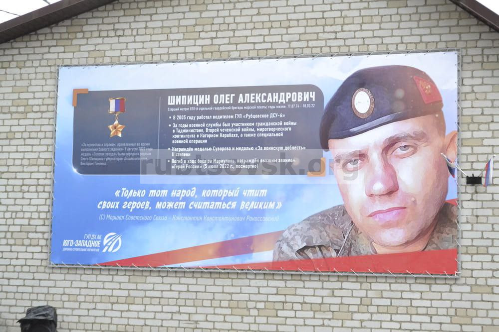 В канун Дня ветеранов боевых действий в Рубцовске, на территории Юго-Западного дорожно-строительного управления состоялось торжественное открытие памятного стенда, который посвящен бывшему сотруднику ЮЗДСУ, Герою России, рубцовчанину Олегу Шипицину, погибшему в бою под Мариуполем в ходе проведения специальной военной операции.