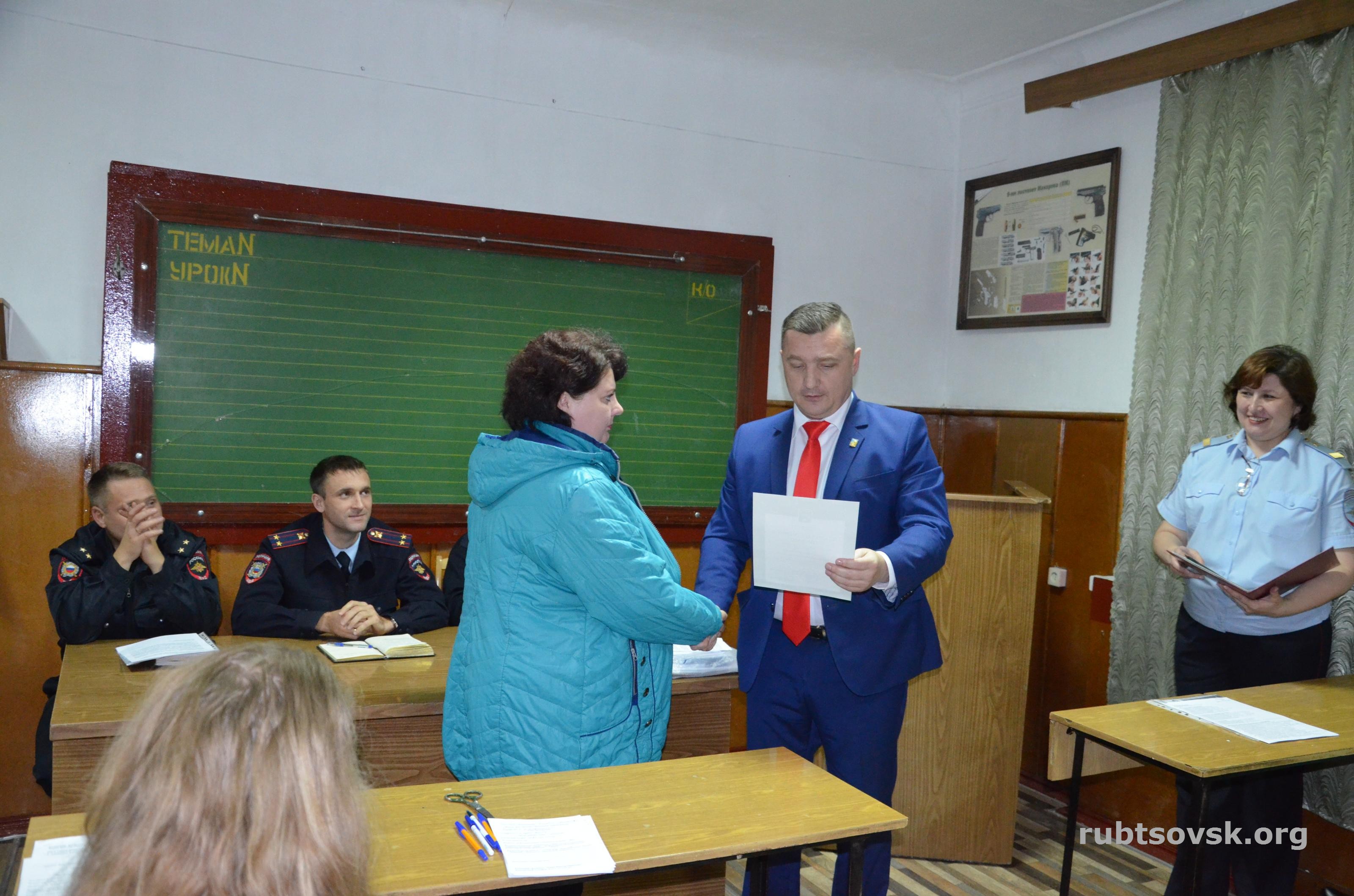 На минувшей неделе в МО МВД России «Рубцовский» за активную помощь в осуществлении охраны общественного порядка при проведении культурно-массовых, спортивных и профилактических мероприятий Благодарственными письмами и Почетными грамотами Главы Администрации города Рубцовска награждены Сергей Березовский, Наталья Гузеева, Татьяна Захарова, Юлия Зубарева, Татьяна Соболева, Виталий Шевчик, Сергей Хлыстов. Награды вручил и.о. заместителя Главы Администрации Рубцовска Игорь Левин.