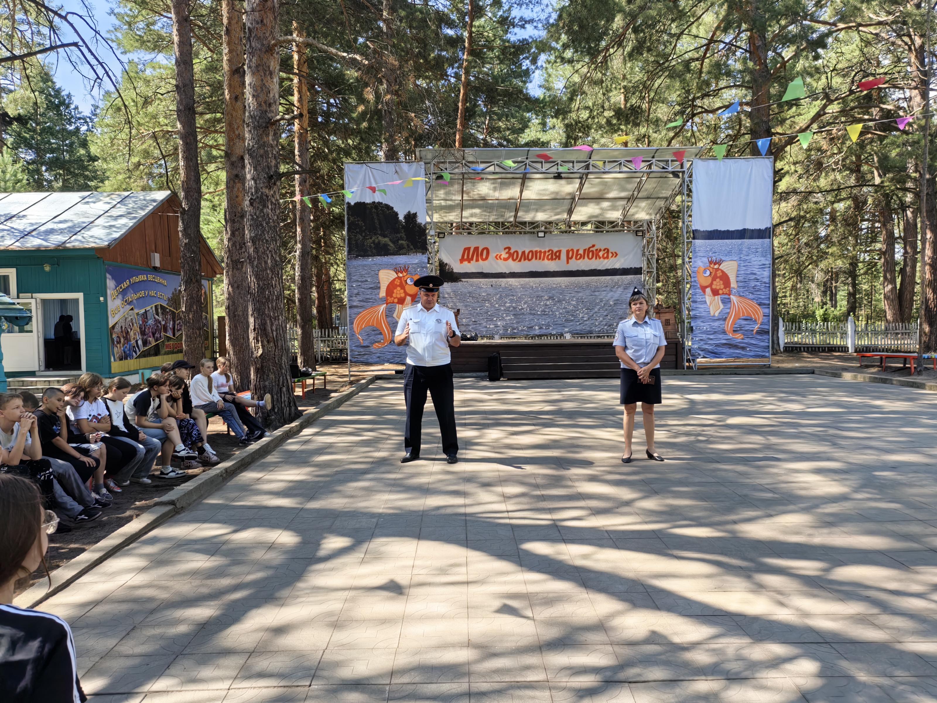 Сотрудники отдела Госавтоинспекции совместно с инспекторами по делам несовершеннолетних МО МВД России «Рубцовский» посещают загородные оздоровительные лагеря: «Золотая рыбка», «Салют», имени Г.С. Титова, где проводят беседы, игры и мероприятия по безопасности дорожного движения.