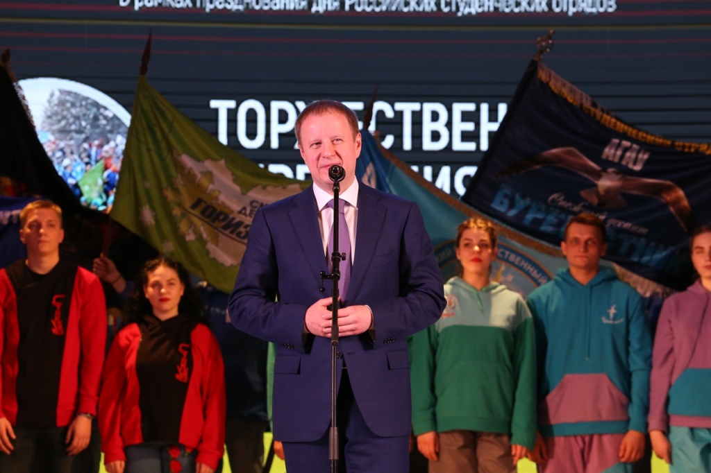 20 февраля в Барнауле состоялось торжественное закрытие Всероссийской патриотической акции «Снежный десант» в рамках празднования Дня РСО. В мероприятии приняли участие Губернатор Алтайского края Виктор Томенко, представители Правительства Алтайского края, руководители учебных заведений, общественные деятели. Программа мероприятия была очень насыщена: яркие танцевальные номера, завораживающие песни, и, конечно же, самое волнительное и торжественное событие – награждение по итогам Всероссийской патриотической акции «Снежный десант 2020», а также за значимый вклад в развитие движения СО, отметили бойцов и ветеранов студотрядов.
