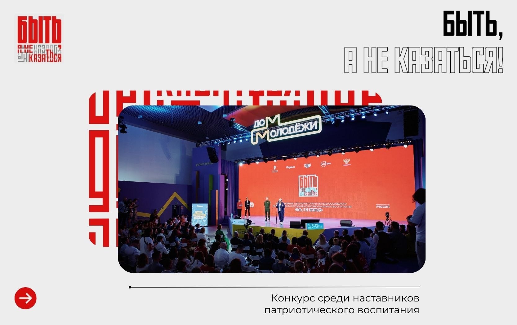 Движением Первых реализуется первый Всероссийский конкурс среди наставников патриотического воспитания «Быть, а не казаться!». Конкурс призван создать сообщество наставников патриотического воспитания и формирования кадрового резерва наставников.