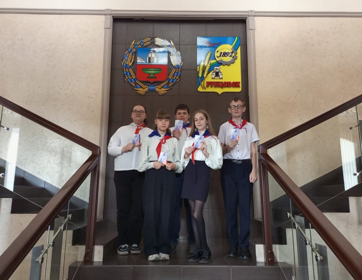 Сегодня в рамках Всероссийской программы «Мы – граждане России!» в актовом зале Администрации Рубцовска состоялась церемония вручения первых паспортов 14-летним гражданам России. Пять ребят Движения Первых из школы № 18 в торжественной обстановке получили один из главных документов в жизни – паспорт гражданина Российской Федерации. Паспорта вручали Первый заместитель Главы Администрации города Рубцовска - председатель комитета по финансам, налоговой и кредитной политике Владимир Пьянков, главный специалист по организации работы Движения Первых в Рубцовске Юлия Осипенко.