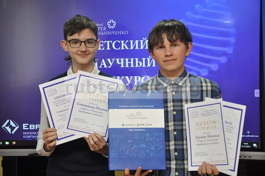 10 декабря 2021 года в Рубцовском филиале Центра детского научного и инженерно-технического творчества «Наследники Ползунова» состоялся отборочный этап IV Детского научного конкурса Фонда Андрея Мельниченко. Он реализуется в рамках «Программы поддержки одаренных школьников в регионах присутствия компаний ЕВРОХИМ, СУЭК и СГК».
