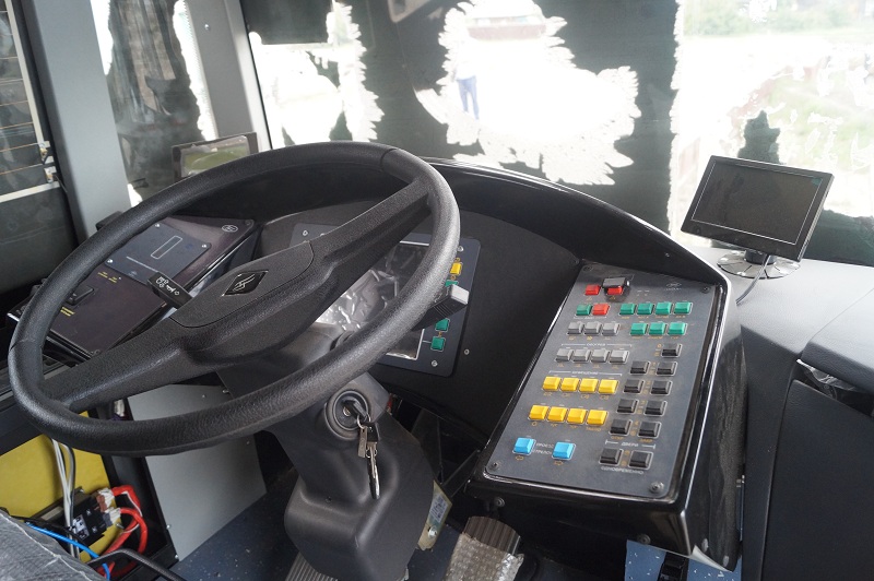 Перед водителем имеются несколько мониторов. На один из них передаются данные системы видеонаблюдения, установленной в салоне. На другом отображается система записи и хранения информации технического состояния электронного управления тяговым двигателем, неполадок и действий водителя во время движения, автоматическая система смазки узлов и агрегатов.