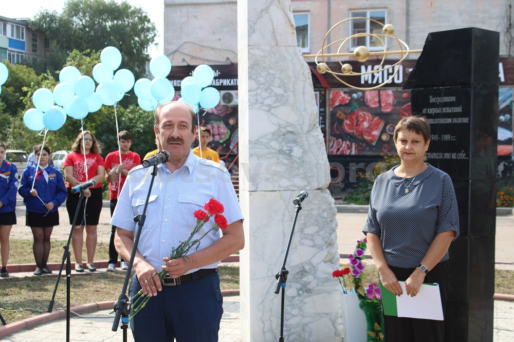 Сегодня у памятника пострадавшим от ядерных испытаний состоялся торжественный митинг, посвященный 70-летию ядерных испытаний на Семипалатинском полигоне. В митинге, посвященном этому событию, приняли участие Глава Рубцовска Дмитрий Фельдман, депутаты Рубцовского городского Совета депутатов, руководители управлений социальной защиты и культуры,президент Алтайской региональной организации «Семипалатинск-Чернобыль» Сергей Корсаков, председатель Рубцовской общественной организации пострадавших от ядерных испытаний на Семипалатинском полигоне Нина Чернышова, представители общественных организаций граждан, пострадавших от радиационного воздействия, рубцовчане. Торжественную программу открыл оркестр войсковой части 6720.
