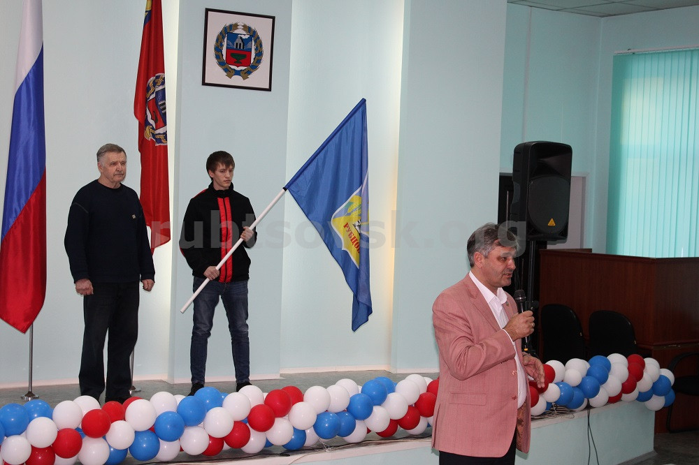 На торжественной церемонии открытия зимней Олимпиады городов Алтая, которое состоится 15 февраля на стадионе “Торпедо”, сборная города будет идти под единым флагом команды Рубцовска. С 2013 года этот флаг стал настоящим талисманом. С ним было завоевано множество медалей. Под этим флагом в 2018 году сборная Рубцовска стала победителем VIII зимней Олимпиады городов Алтая в Белокурихе. Почетное право передачи флага сборной города представителю команды было доверено участнику IX летней Олимпиады городов Алтая 2019 года, мастеру спорта России по гиревому спорту, многократному чемпиону Европы среди ветеранов и участнику I летней Олимпиады городов Алтая 1981 года Виктору Слепцову. Из рук старшего товарища под громкие аплодисменты присутствующих флаг принял игрок сборной по футболу, кандидат в мастера спорта России Евгений Иващенко.