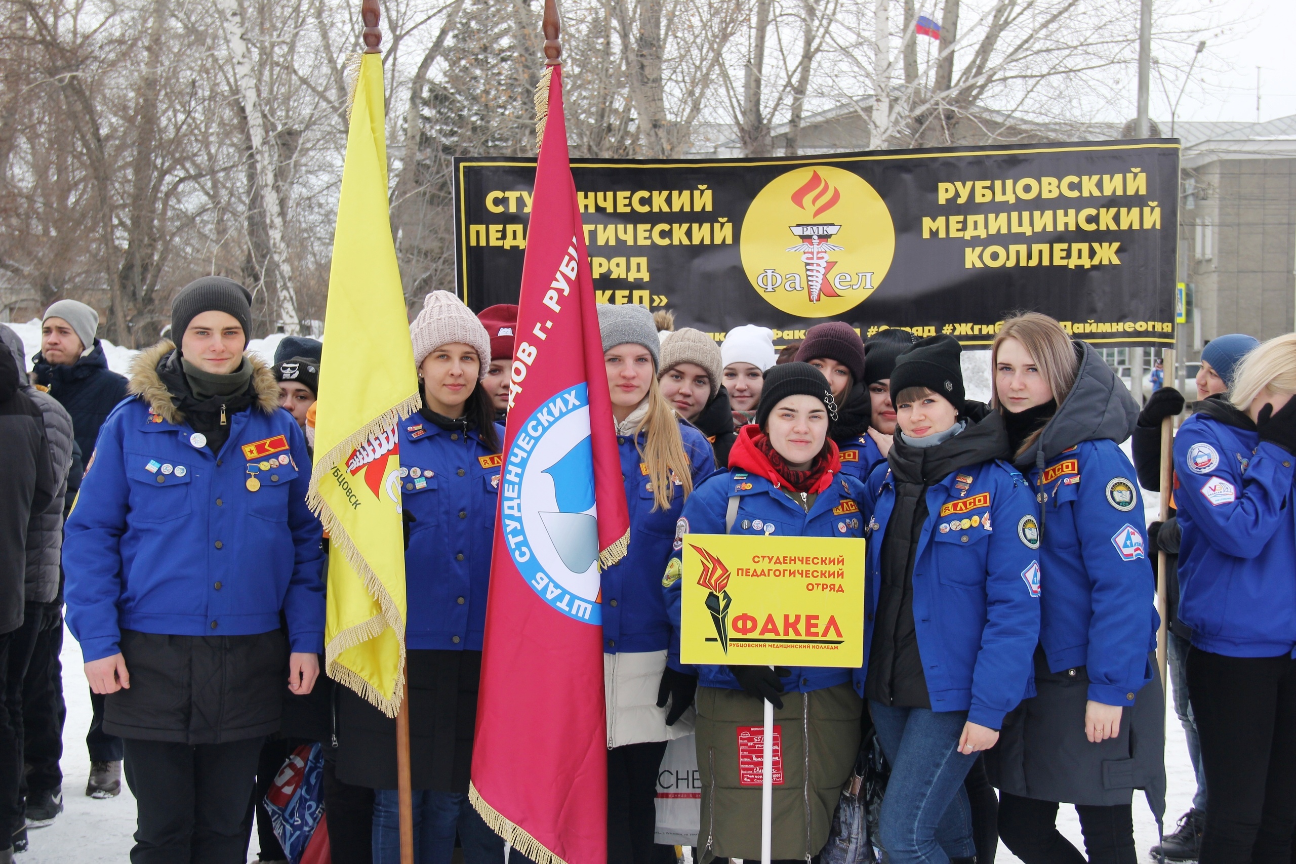 17 февраля в Сквере комсомольской Славы состоялась торжественная линейка, посвященная Дню Российских Студенческих Отрядов. На линейку прибыли студенческие отряды нашего города. Каждый отряд сдал рапорт командиру Штаба студенческих и волонтерских отрядов города Рубцовска Алине Мурумбаевой. С приветственным словом в адрес бойцов обратилась начальник управления культуры, спорта и молодежной политики Марина Зорина. Она поблагодарила ребят за помощь в организации и проведении зимней Олимпиады городов Алтайского края, а также за активное участие в проведении общегородских мероприятий и акций.