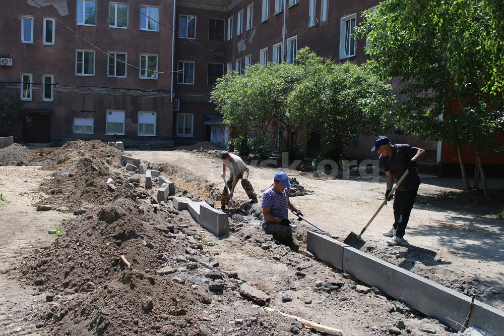 На сегодняшний день работы идут по улице Пролетарской, 240, переулку Гражданскому 33, 54, 56, улице Юбилейной, 38а, улице Красной, 58, проспекту Ленина, 160, 127, 129, 133, 135. Подрядчик уже произвел рекультивацию и планировку земли под обустройство тротуарных дорожек и основных элементов благоустройства, выполнил частичную установку бордюрного камня, в ближайшее время приступит к асфальтированию дорожек.