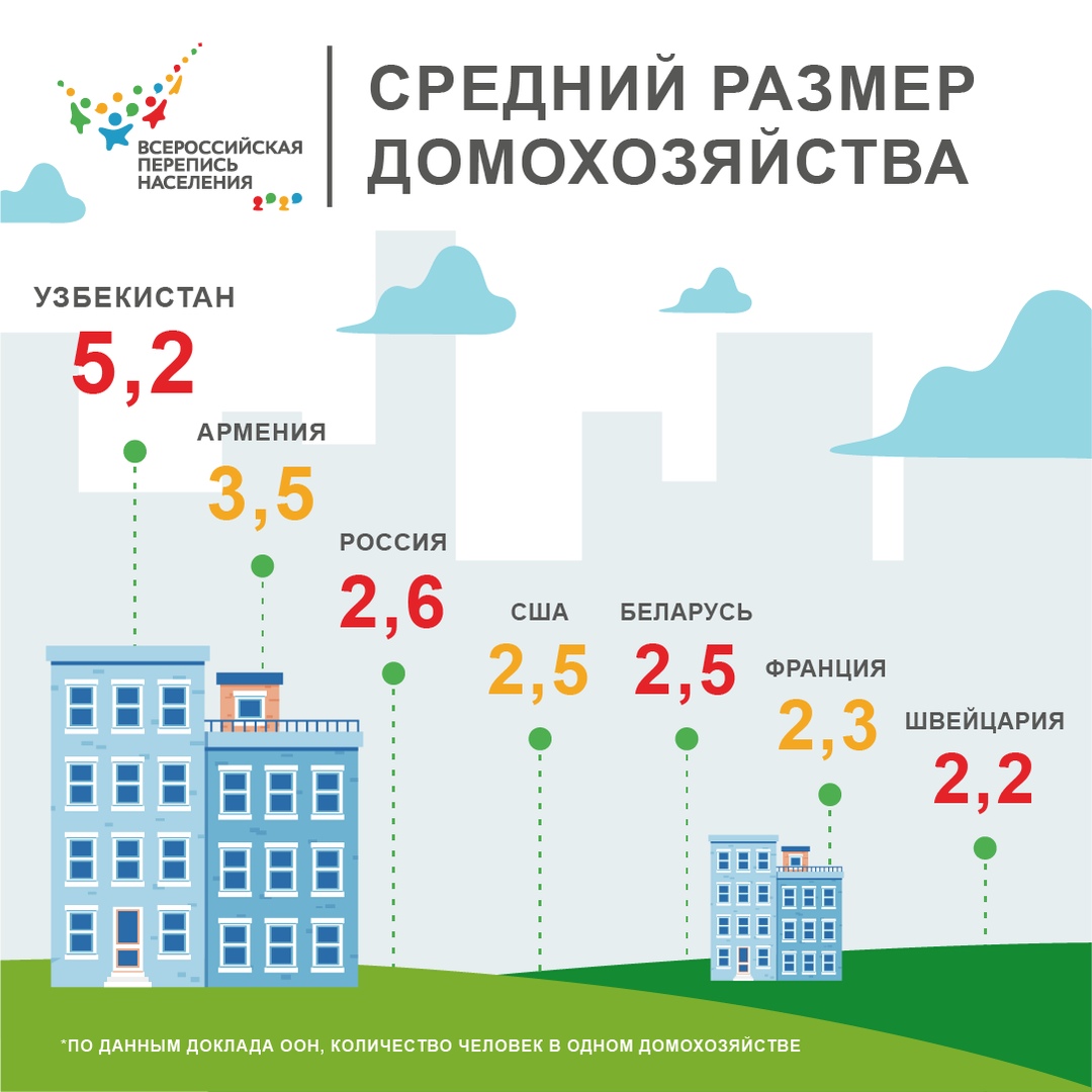 Средний размер домохозяйства в России, по данным переписи 2010 года, составлял 2,6 человека и мало отличался от размеров домохозяйств в развитых странах. В Алтайском крае этот показатель немногим меньше – 2,5 человека.