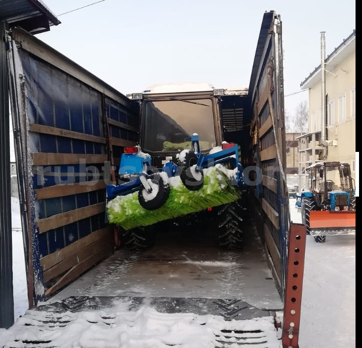Ценный груз – три трактора “Беларус” с дополнительным навесным оборудованием. Два трудяги оснащены резиновыми ножами и щетками, а третий – металлическим ножом и шнекороторным очистителем.