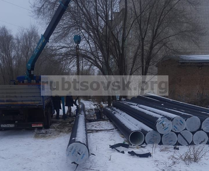 На фото внизу: школа №1; трубы для коллектора.
