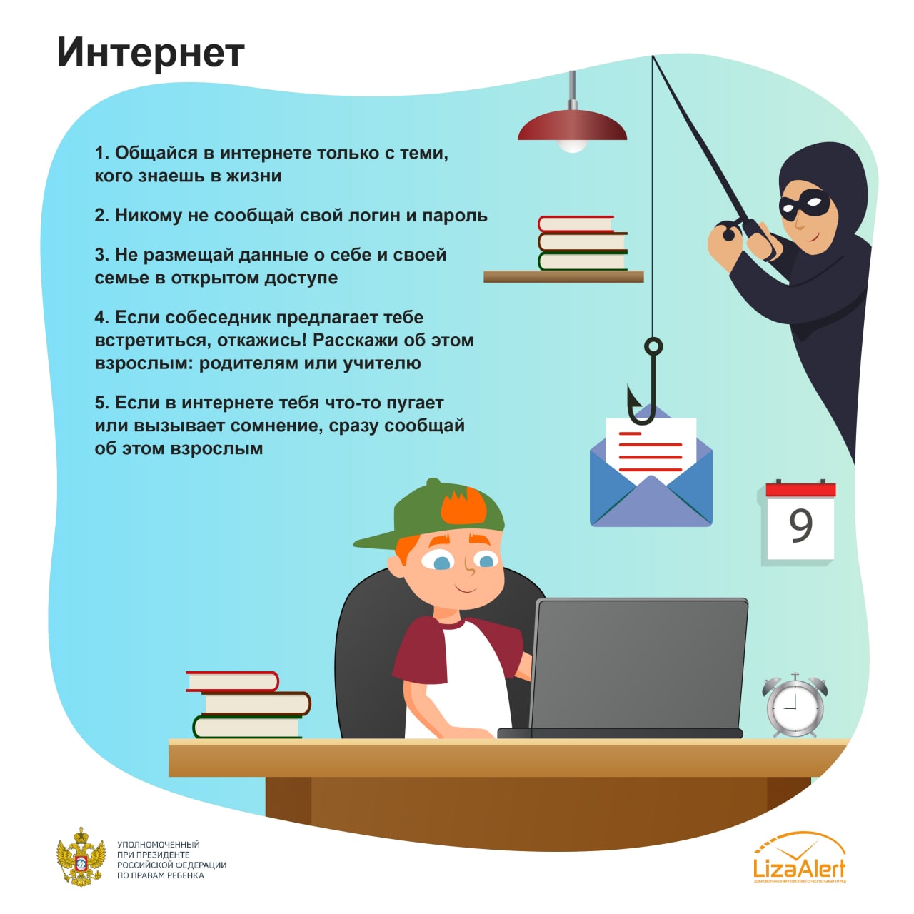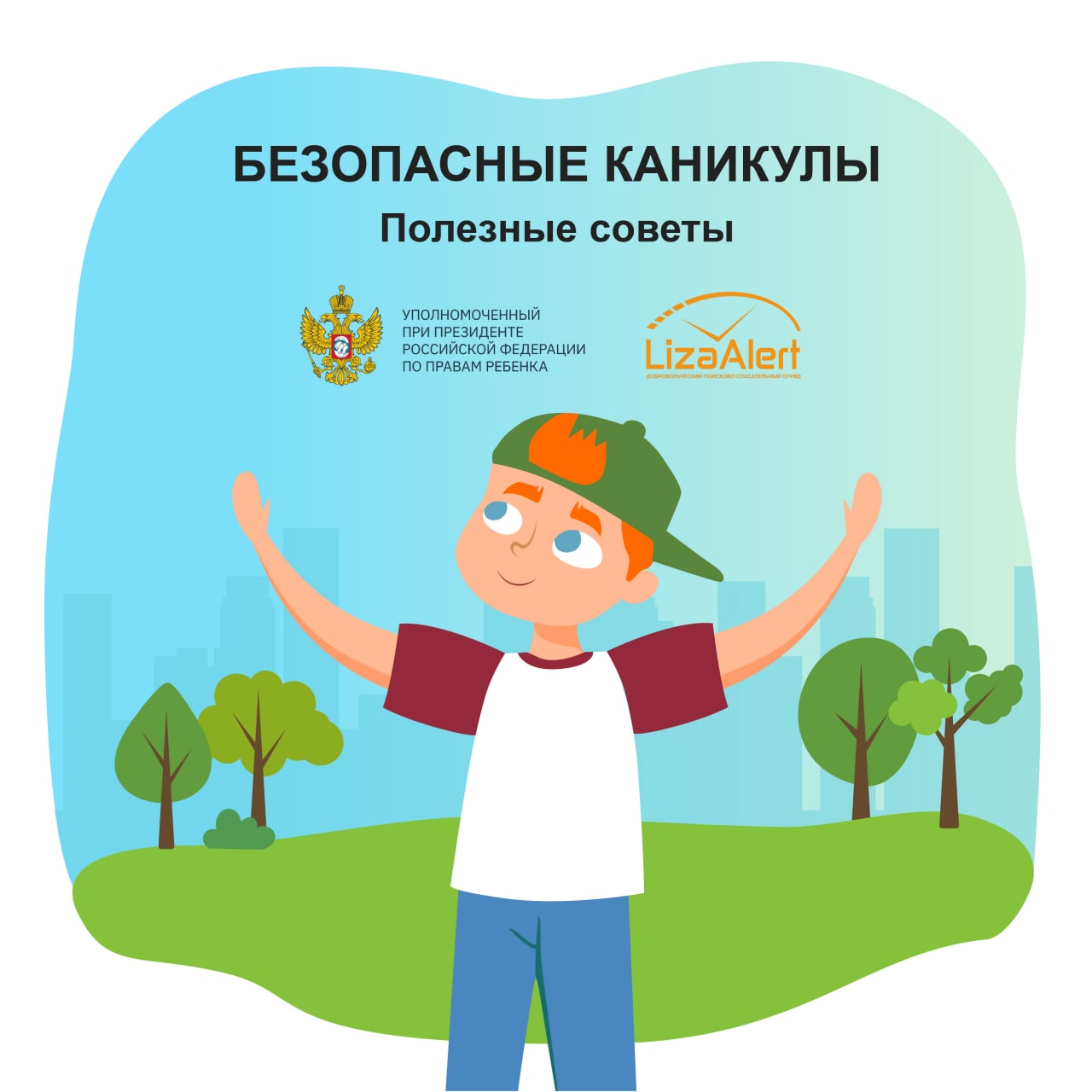 В рамках информационной кампании «Безопасное лето» уполномоченным при президенте Российской Федерации по правам ребенка совместно с поисковым отрядом «ЛизаАлерт» и Центром Поиска Пропавших Людей разработаны памятки по безопасному поведению детей в период летних каникул.