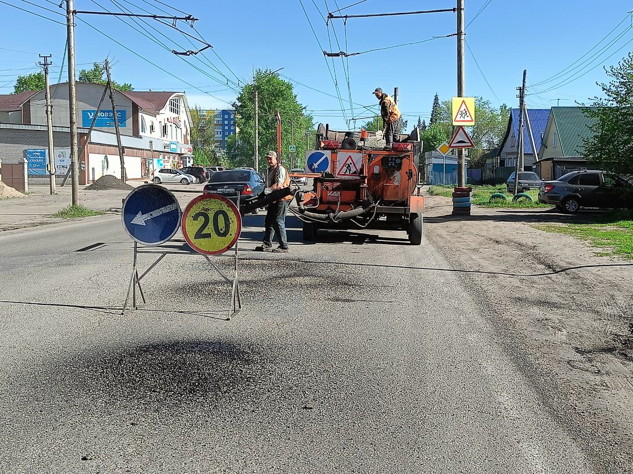 Продолжаются работы и по ямочному ремонту дорожного покрытия на ул. Пролетарской струйно-инъекционным методом с помощью машины «Бецема».