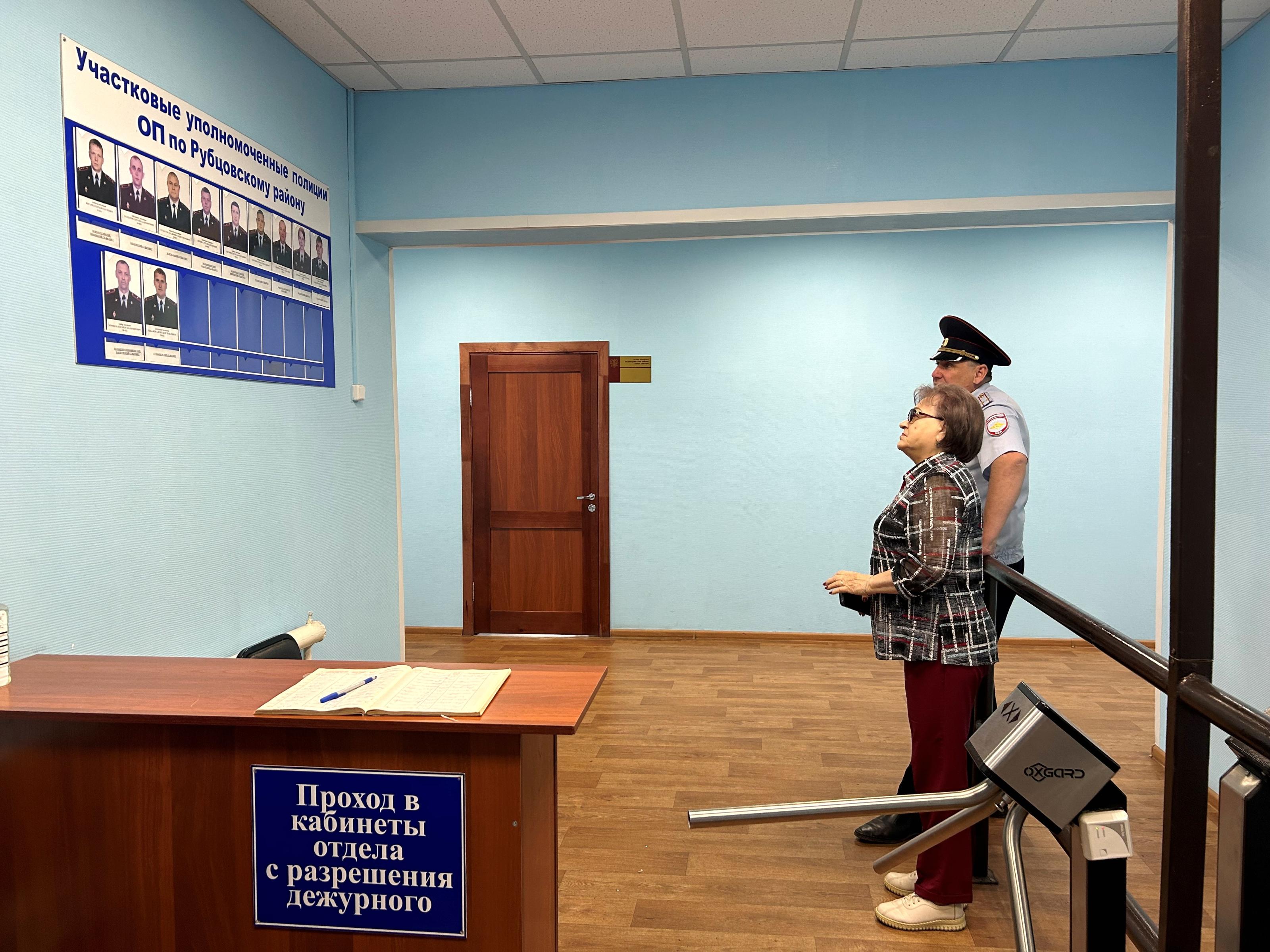 Отдел полиции по Рубцовскому району Валентине Ивановне показал заместитель начальника ОП, подполковник полиции Величко Сергей Юрьевич.Сергей Юрьевич с большим удовольствием показал и рассказал о том, как граждане с ограниченными возможностями здоровья могут обратиться в полицию, продемонстрировал актуальный стенд с информацией об участковых Рубцовского района, а также провел Валентину Ивановну в учебный тир, продемонстрировав помещение, где все сотрудники МО проходят обучение и тренировку по стрельбе из пистолета Макарова.