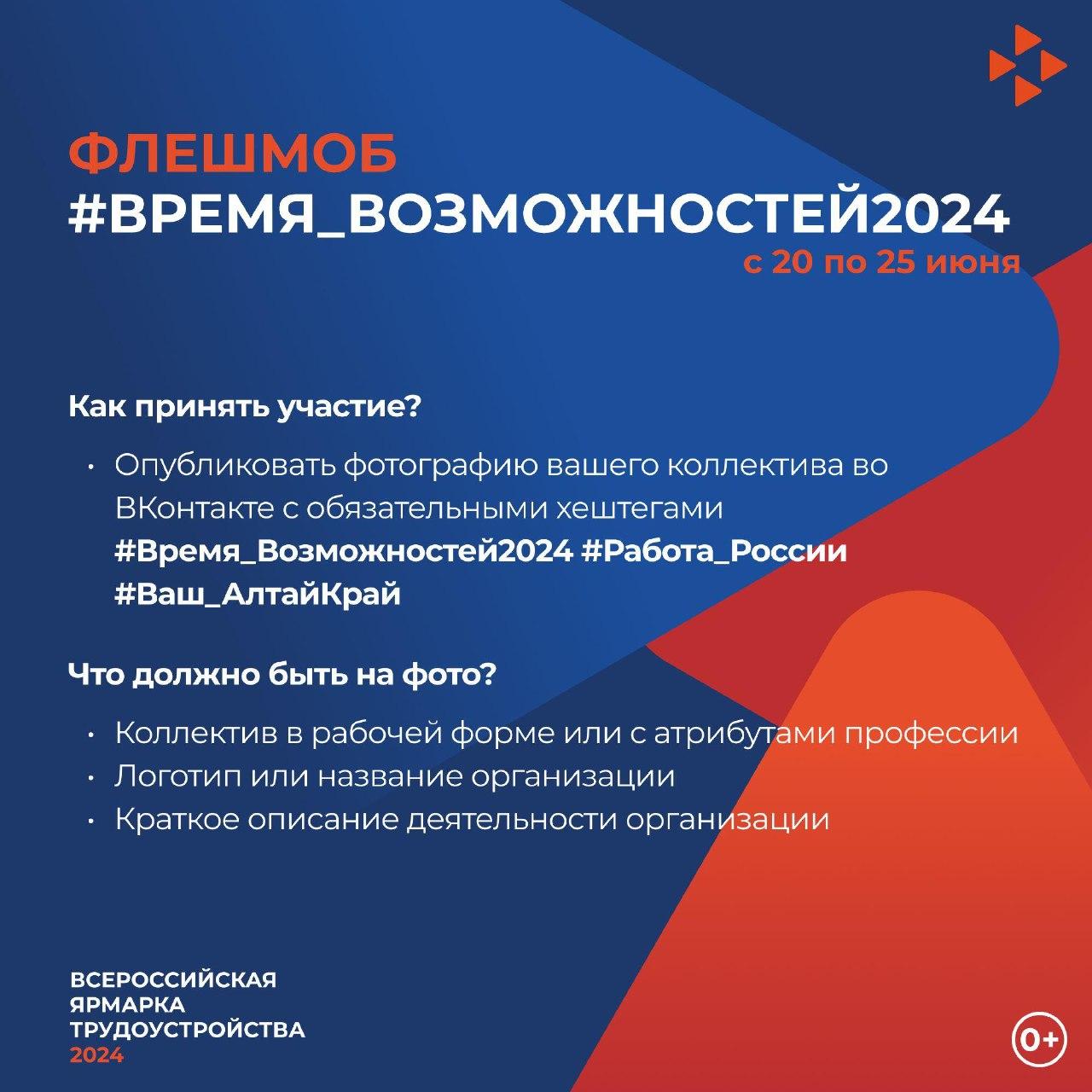 Предлагаем сотрудникам предприятий Рубцовска поучаствовать во флешмобе «#ВРЕМЯ_ВОЗМОЖНОСТЕЙ2024».