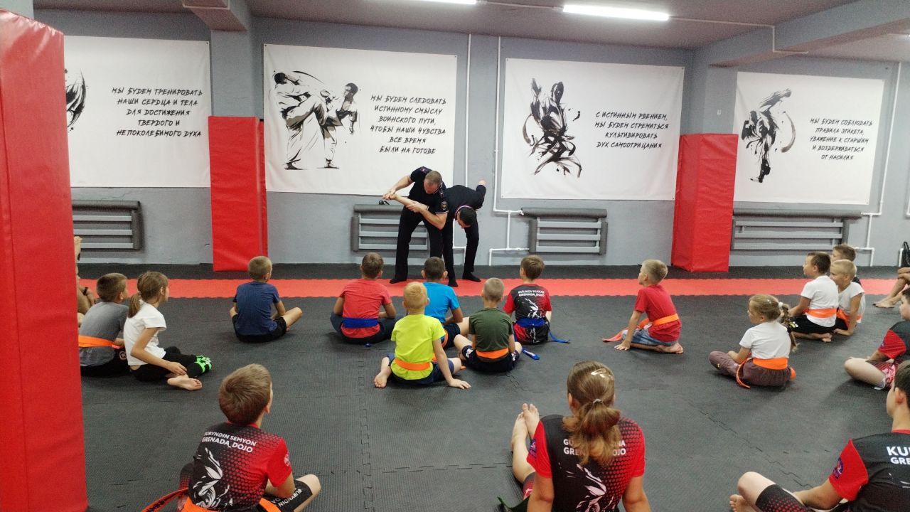 Заместитель начальника экспертно-криминалистического отдела МО МВД России «Рубцовский», майор полиции Максим Пихтовников и специалист направления вооружения отдельного батальона патрульно-постовой службы полиции, старший лейтенант полиции Сергей Бадретдинов показали ребятам специальные боевые приемы, применяемые при задержании преступников, и объяснили, как правильно применить силу, когда преступник нападает с оружием.