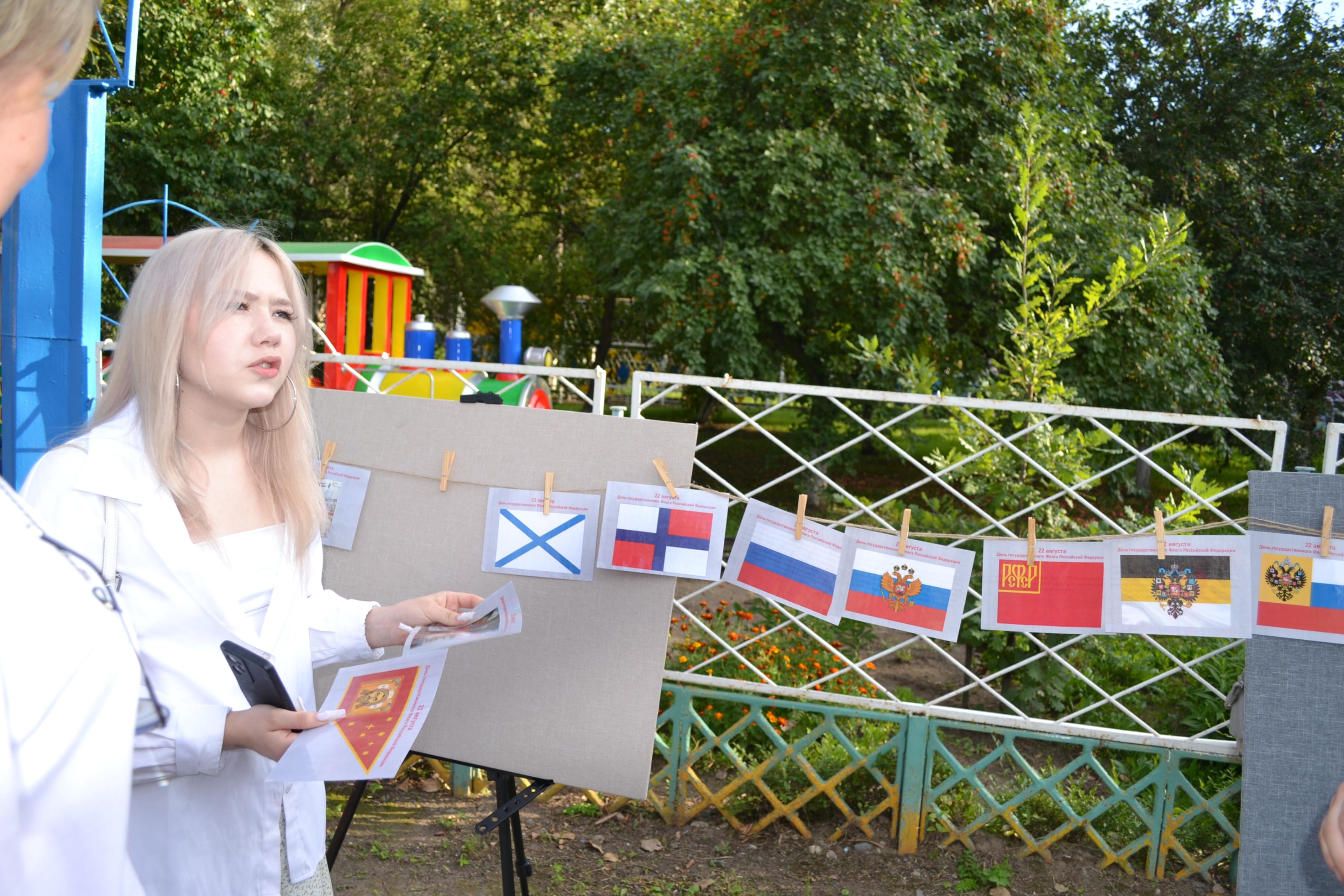 С Днем флага России присутствующих поздравил Глава города Рубцовска Дмитрий Фельдман. Воспитанники спортивных школ и прославленные спортсмены города провели флешмоб «Зарядка с чемпионом». Сотрудники Центральной библиотеки провели игру «Лента времени» по истории развития государственной символики России с древних времен до современного периода. Специалисты краеведческого музея провели мастер-класс для детей разного возраста по изготовлению бумажных сувениров.