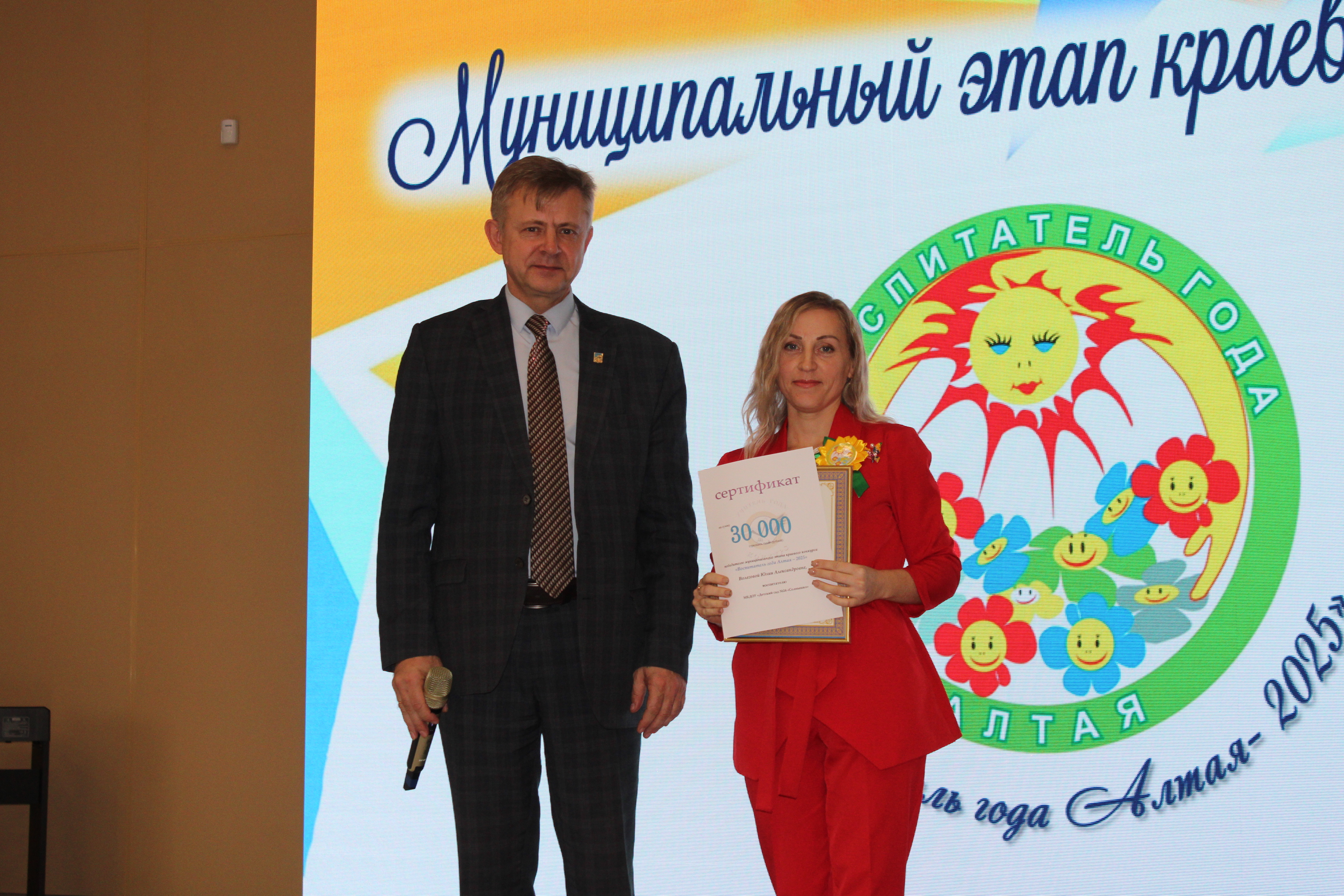 В рамках муниципального этапа профессионального мастерства «Воспитатель года Алтая – 2025» в номинации «Признание родительской общественности» победила воспитатель детского сада № 24 «Солнышко» Юлия Волегова.