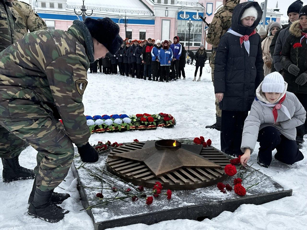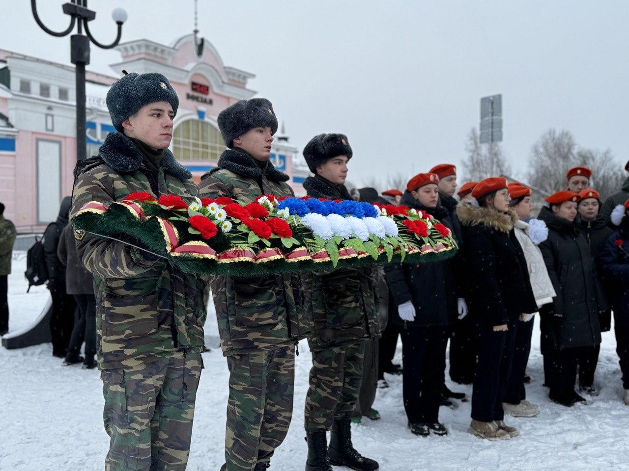 Сегодня в Рубцовске состоялась памятная акция, посвященная Дню Героев Отечества. В акции приняли участие военнослужащие оперативного полка Росгвардии, представители Администрации города и Рубцовского совета депутатов, учащиеся школ города, активисты «Движения Первых», бойцы студенческих отрядов.