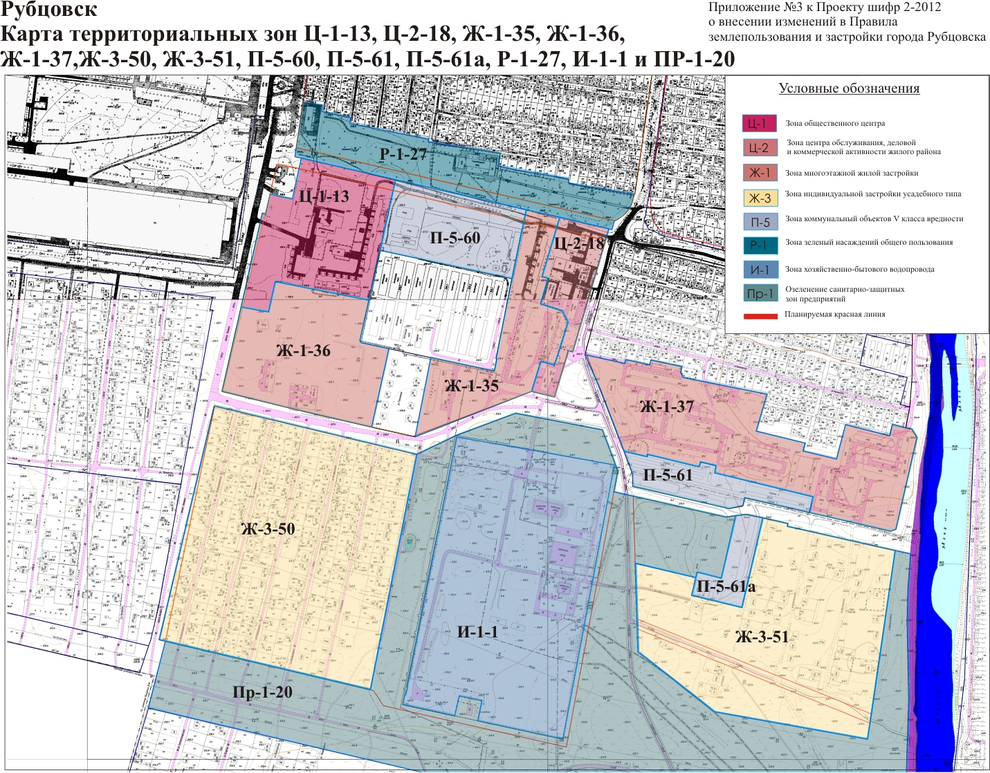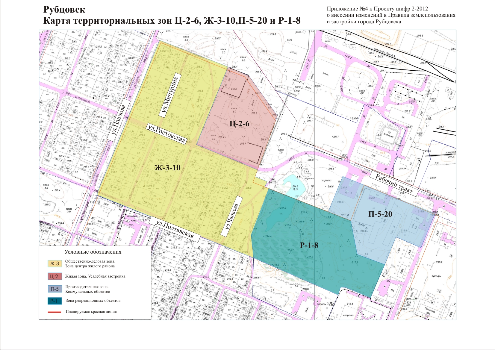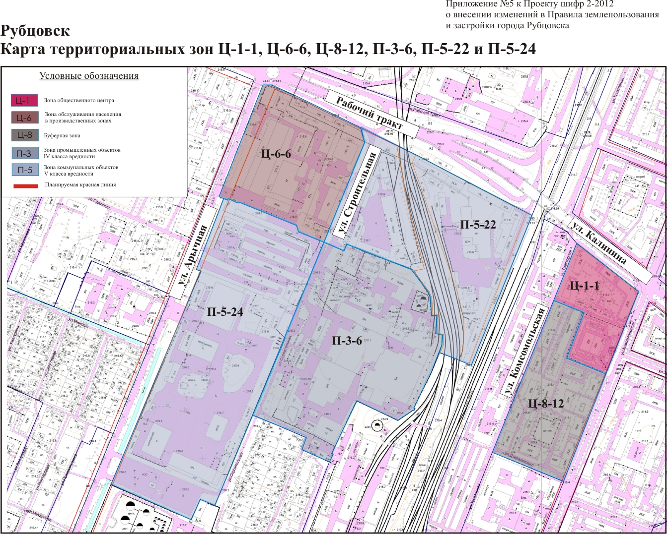 по проекту, шифр 2-2012, о внесении изменений в Правила землепользования и застройки города Рубцовска, утвержденные решением Рубцовского городского Совета депутатов от 04.12.2007 №621 с изменениями.