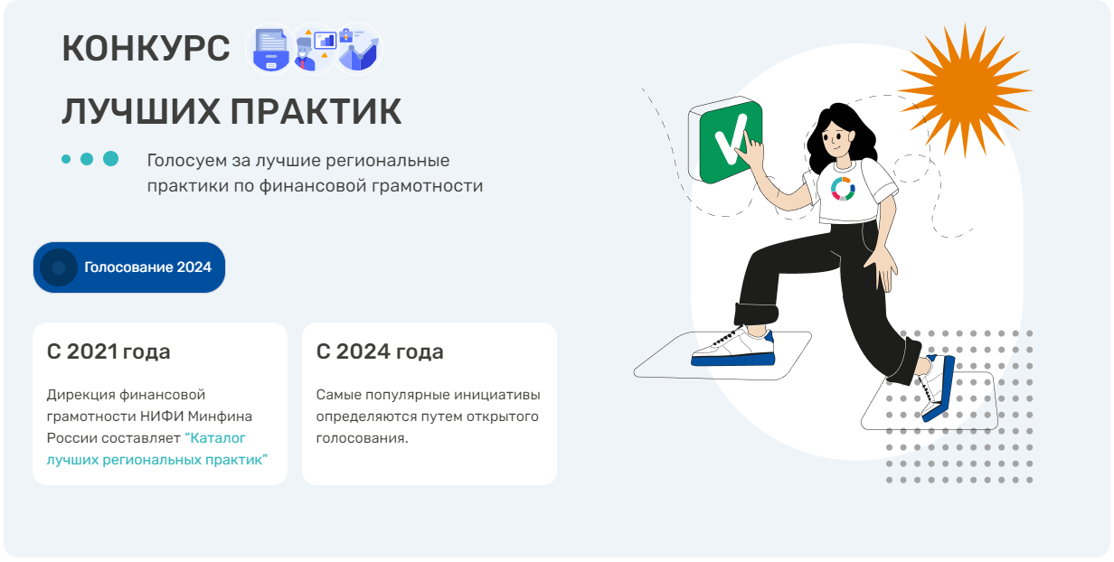 Жители страны могут выбрать лучшие, по их мнению, практики финансового просвещения, которые были направлены субъектами Российской Федерации в Каталог лучших практик-2024.