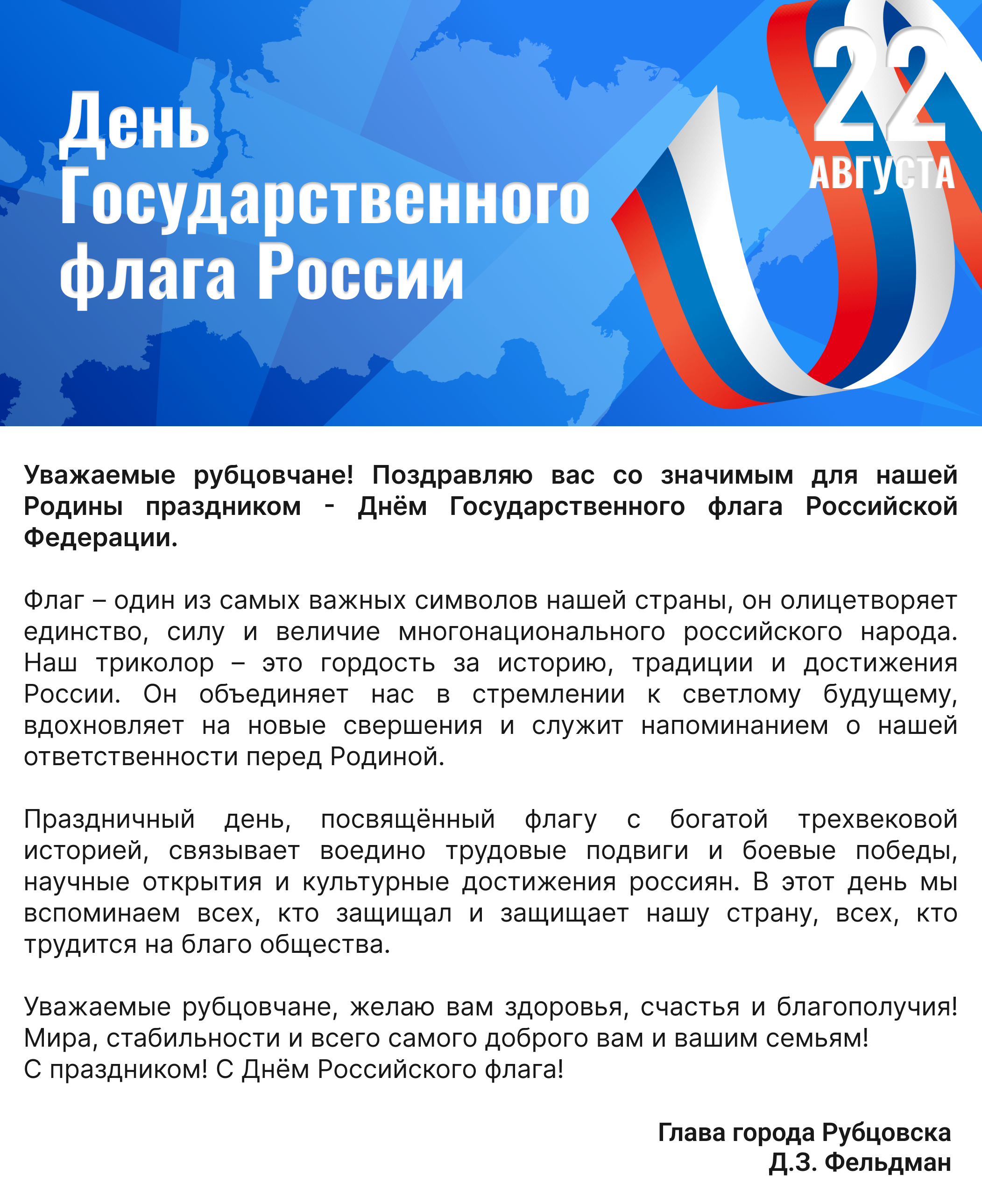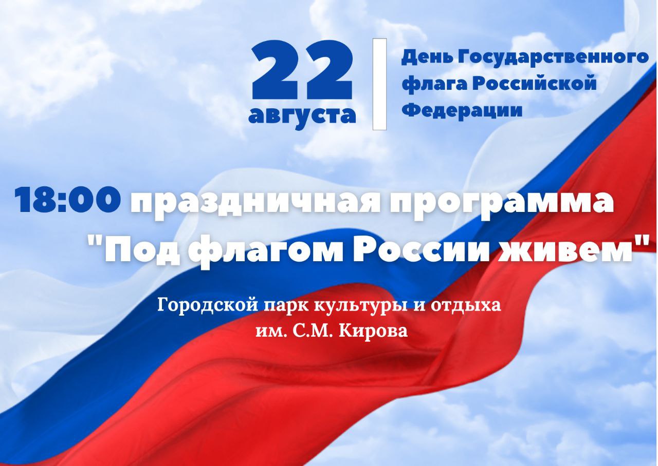 В Рубцовске состоится праздничная программа «Под флагом России живем», посвященная Дню Государственного флага России. Учреждения культуры города приглашают рубцовчан и гостей города стать частью праздника. Для вас выступят лучшие творческие коллективы города, будут организованы конкурсы, викторины, патриотические мастер классы и выставки.