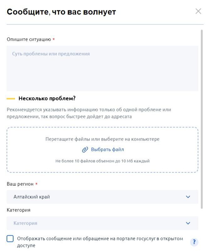 Нажмите «Сообщить о проблеме» на баннере «Госуслуги. Решаем вместе» на сайте Администрации города Рубцовска по ссылке: https://clck.ru/3CCPQe.