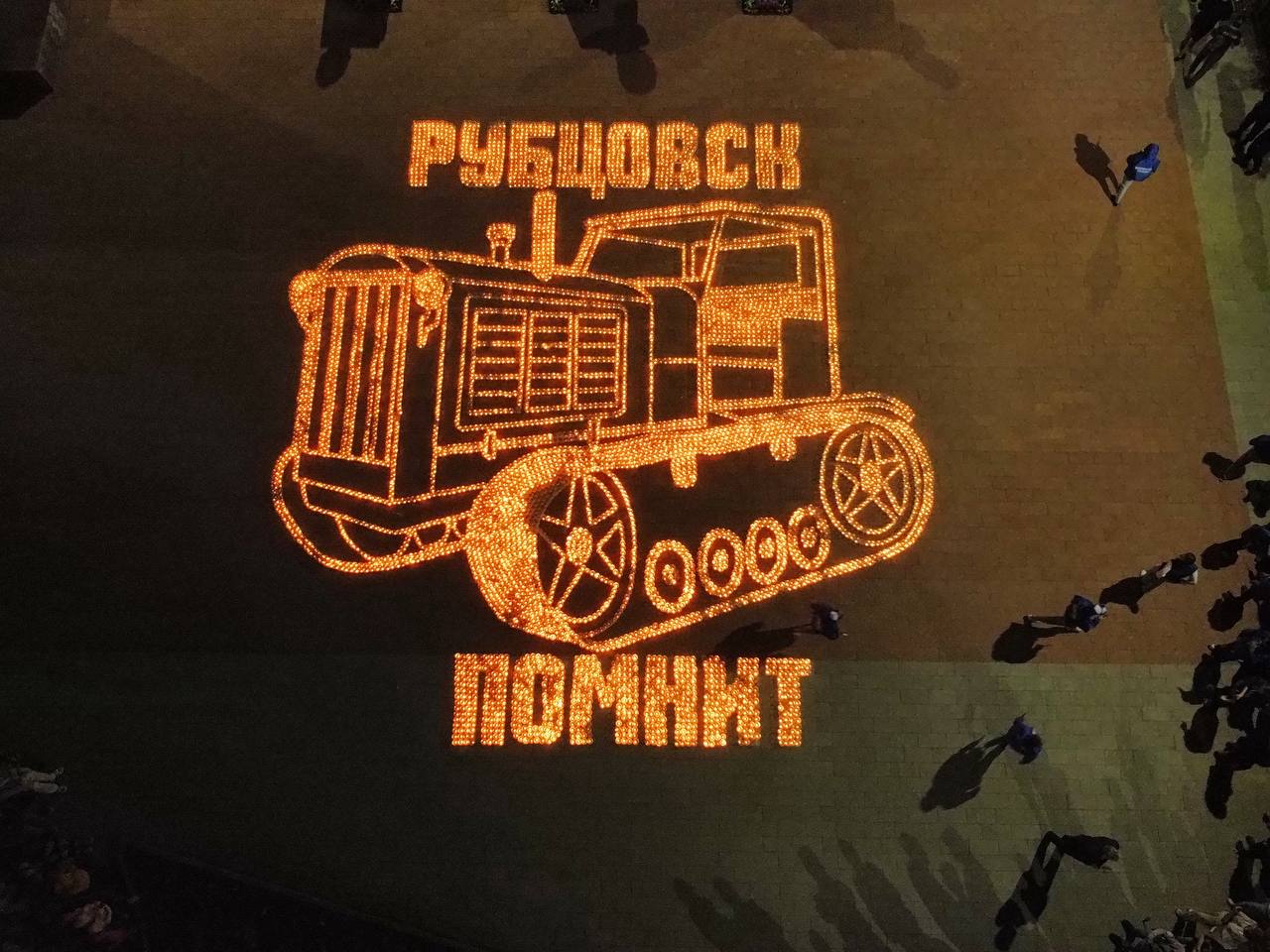 20 июня в Рубцовске состоялась международная акция «Огненные картины войны», инициированная партией «Единая Россия». В сквере Комсомольской славы участники акции выложили гусеничный трактор марки АСХТЗ-НАТИ из 10 тысяч горящих свечей. Этот трактор начали выпускать в нашем городе в 1942 году для нужд фронта и тыла, он стал символом трудового подвига рубцовчан во время войны. Рубцовск помнит Героев-земляков, которые сражались на фронте и трудились в тылу, ковали Великую Победу.