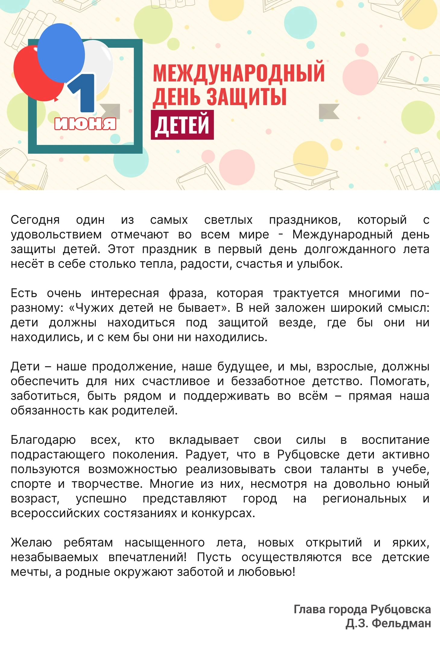 С 1 июня по 31 августа на территории города будет проведена информационная кампания «Не оставляй детей без присмотра вблизи водоемов!». В проведении информационной кампании примут участие представители органов и учреждений системы профилактики безнадзорности и правонарушений несовершеннолетних. На образовательных платформах общеобразовательных учреждений будут размещены видеоматериалы, посвященные безопасному отдыху детей в летний период, правилам поведения на водных объектах, действиям при возникновении или угрозе возникновения чрезвычайных ситуаций природного и техногенного характера в местах массового пребывания людей.
