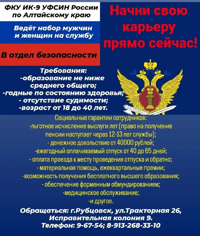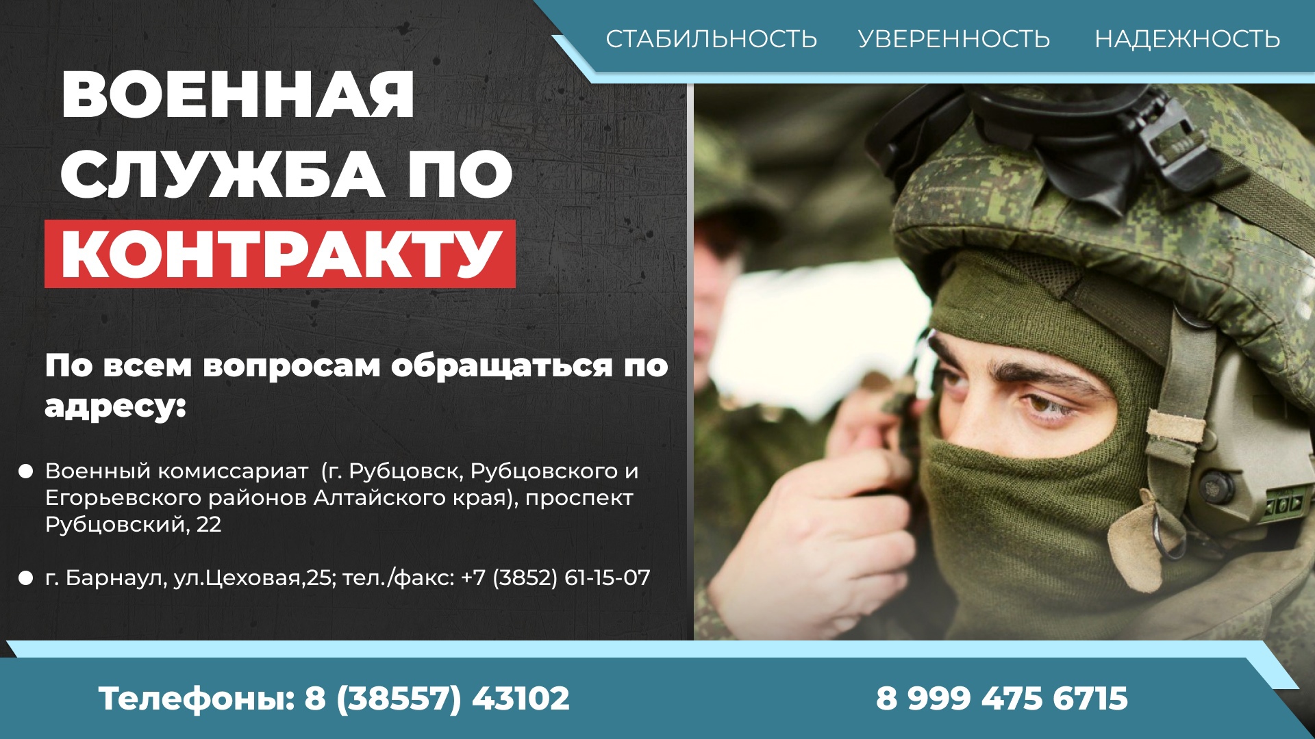 г. Рубцовск, пр-кт Рубцовский, 22; тел.: +7 (38557) 4-47-98; 8 (38557) 43102; 8 999 475 6715