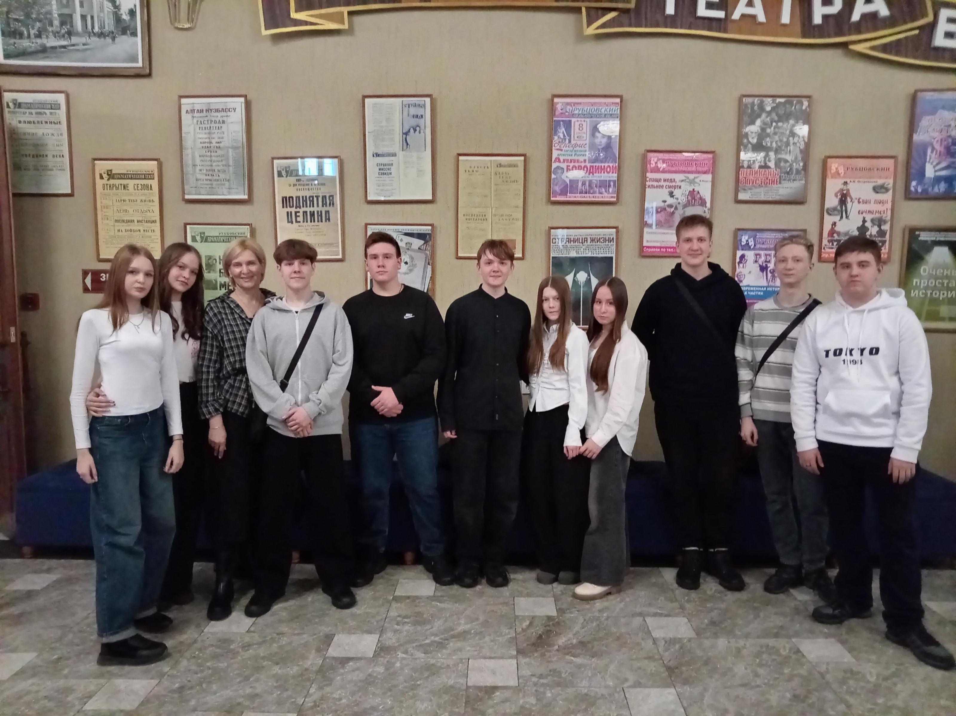 С 21 марта по 5 апреля в Рубцовском драматическом театре проходит Всероссийская акция «Веди родителей в театр». В рамках акции студенты медицинского колледжа и учащиеся 9 «В» класса школы № 1 вместе с педагогом Еленой Руслановной посетили спектакль «Крошка» по пьесе французского драматурга Жана Летраза. Режиссёр-постановщик – заслуженный работник культуры РФ Станислав Спивак. В книге отзывов школьники оставили такие слова: