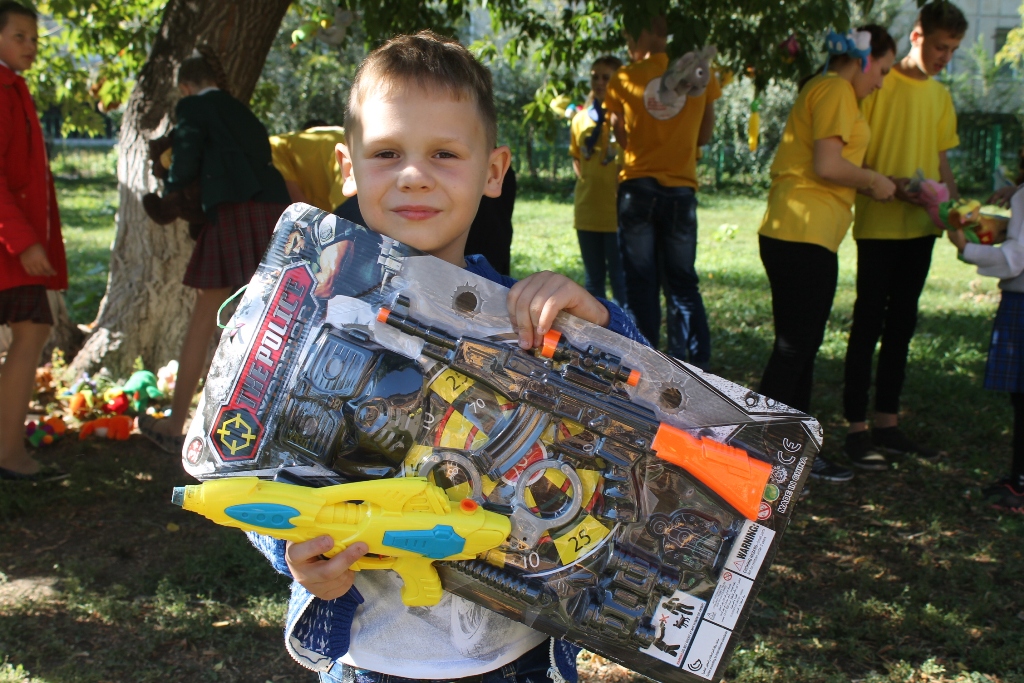 Глаза ребят светились от радости. Каждый из них смог взять столько игрушек, сколько могло поместиться в его руках. Все игрушки, появившиеся на дереве, были собраны педагогами и волонтерами из муниципальных бюджетных общеобразовательных учреждений города Рубцовска: «СОШ № 1», «Кадетская СОШ № 2», «Гимназия № 3», «Гимназия № 8», «СОШ №10 «ККЮС», «Профильный лицей № 24», «Лицей № 7».