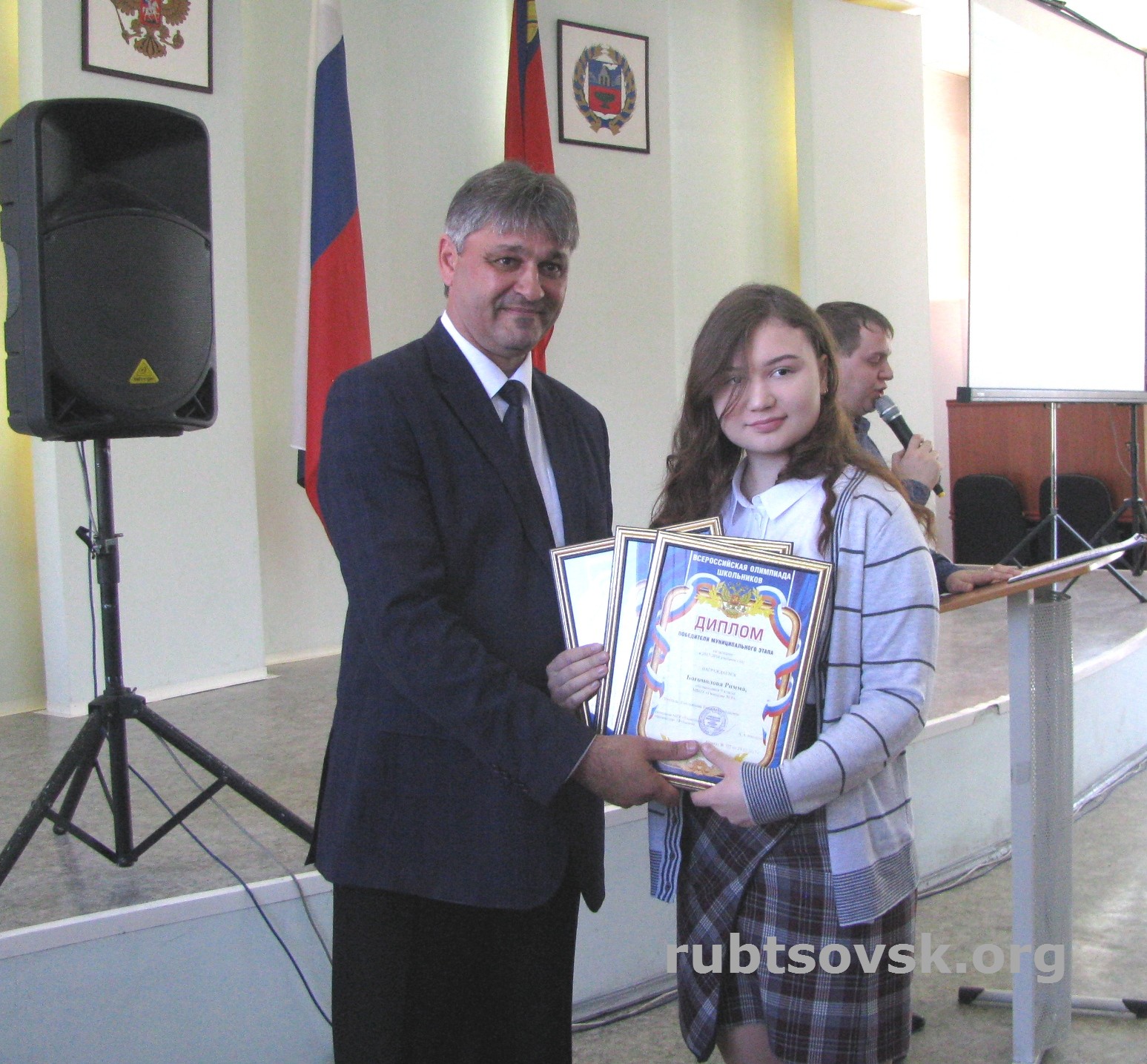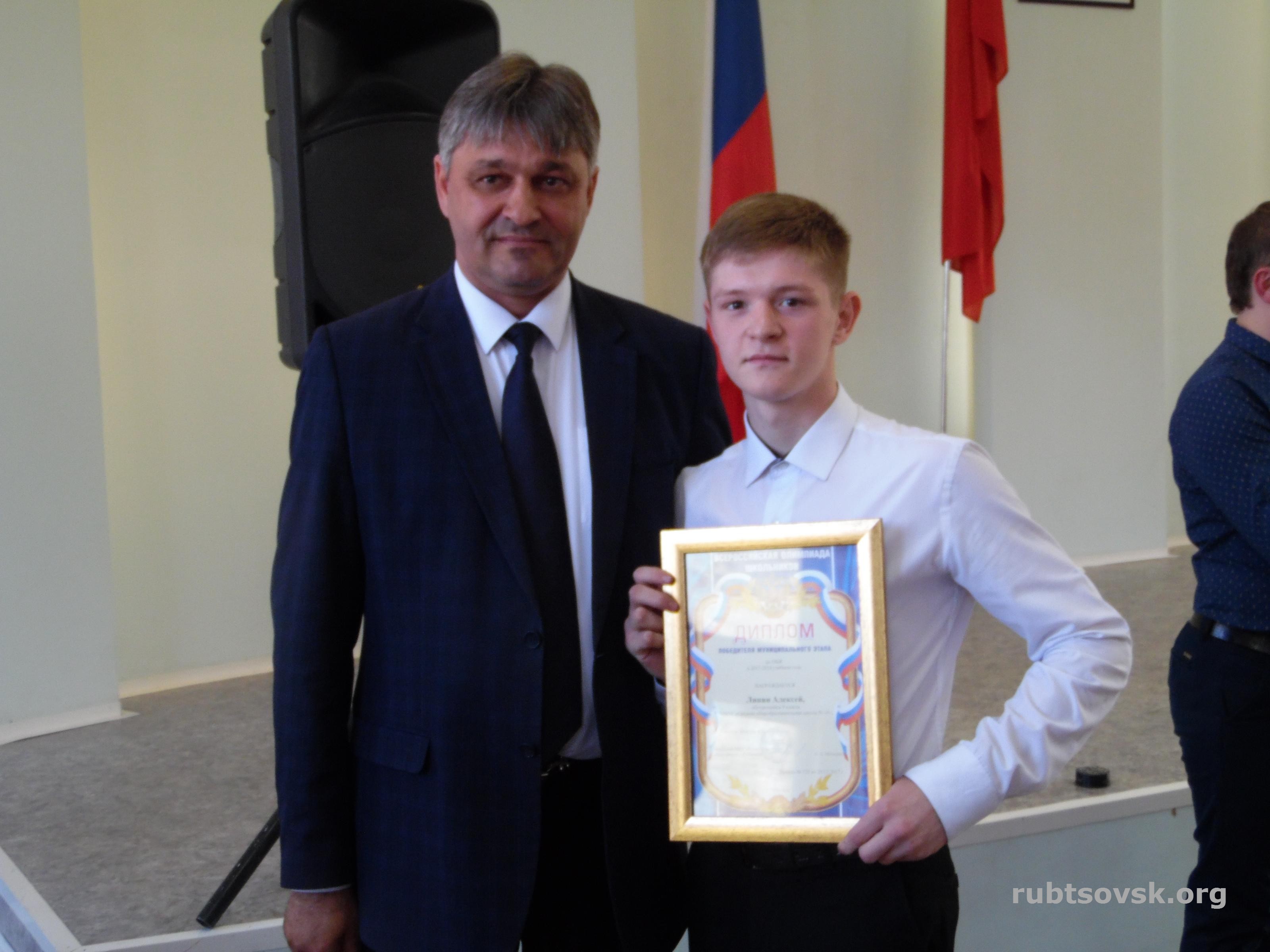 Вот уже на протяжении нескольких лет в Рубцовске стало доброй традицией завершать учебный год чествованием победителей и призеров муниципального, регионального и всероссийского этапов Всероссийской олимпиады школьников. Сегодня на торжественной церемонии награждения присутствовали и.о. заместителя Главы города Рубцовска, начальник управления образования города Алексей Мищерин, победители и призеры регионального и муниципального этапов Всероссийской олимпиады школьников, награждаемые педагоги, представители управления образования города. Ежегодно учащиеся школ города Рубцовска принимают активное участие во Всероссийской олимпиаде школьников и демонстрируют высокие знания по различным дисциплинам. В 2017-2018 учебном году 40 учащихся из 9 школ города стали победителями муниципального этапа, 8 учеников стали победителями и призерами на региональном уровне. Двое учащихся представляли Рубцовск на заключительном этапе Всероссийской олимпиады школьников: учащийся Лицея№6 Алексей Толстобровов и учащийся Гимназии №3 Алексей Поваляев.