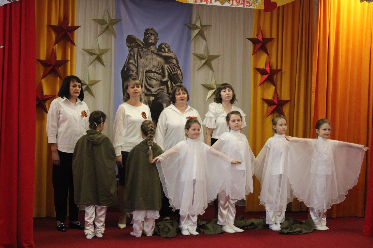На сцене выступили восемь творческих коллективов детских садов города. Дети и взрослые представили живую иллюстрацию ушедшей эпохи, наполненную чувством уважения и благодарности тем, кто отдал жизнь ради свободы страны.
