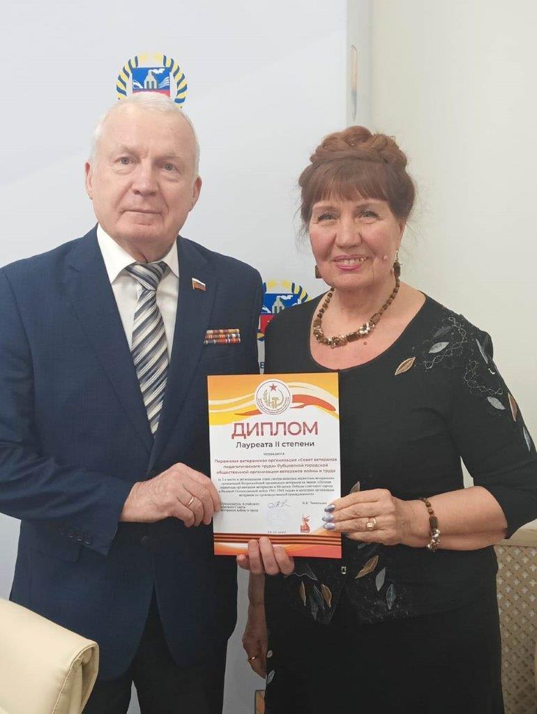 На торжественном заседании им был вручен диплом лауреатов второй степени за участие в конкурсе к 80-летию Победы в Великой Отечественной войне, на который был представлен фильм-презентация по патриотическому воспитанию молодежи «Подвиг народа память хранит».