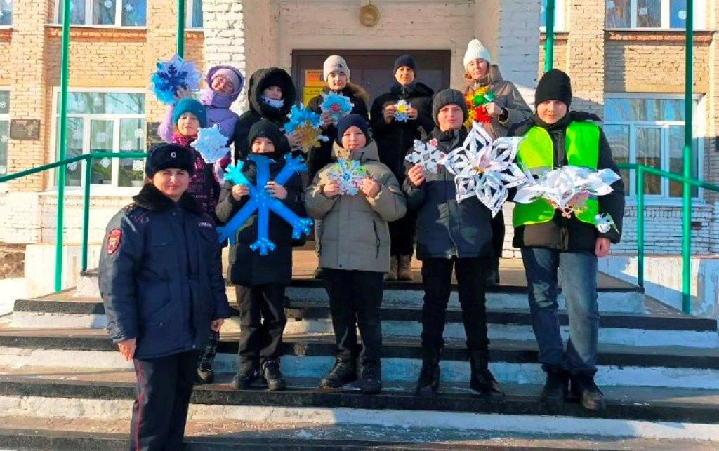 Участники акции изготовили разнообразные фигурные снежинки с надписями, главным посылом которых стал призыв о соблюдении правил дорожного движения для сохранения своей жизни и жизни ребенка на дороге.