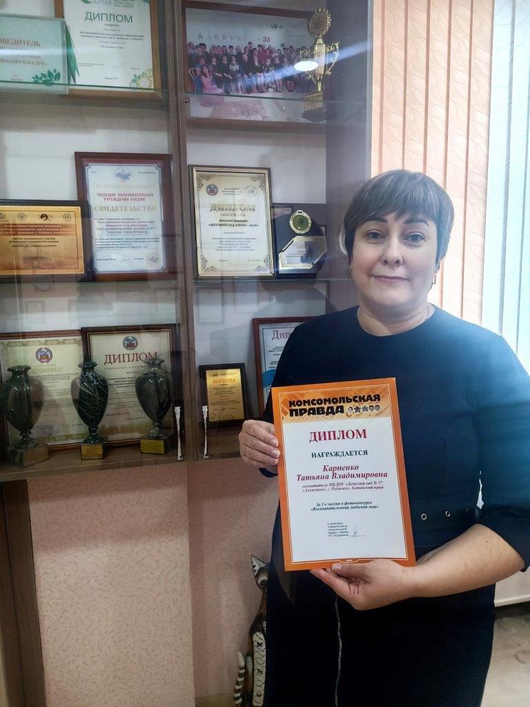 Подведены итоги краевого фотоконкурса «Воспитательница любимая моя», который проводил издательский дом «Комсомольская правда – Барнаул» и Министерство образования и науки Алтайского края. В нем приняли участие представители дошкольных образовательных организаций Алтайского края.