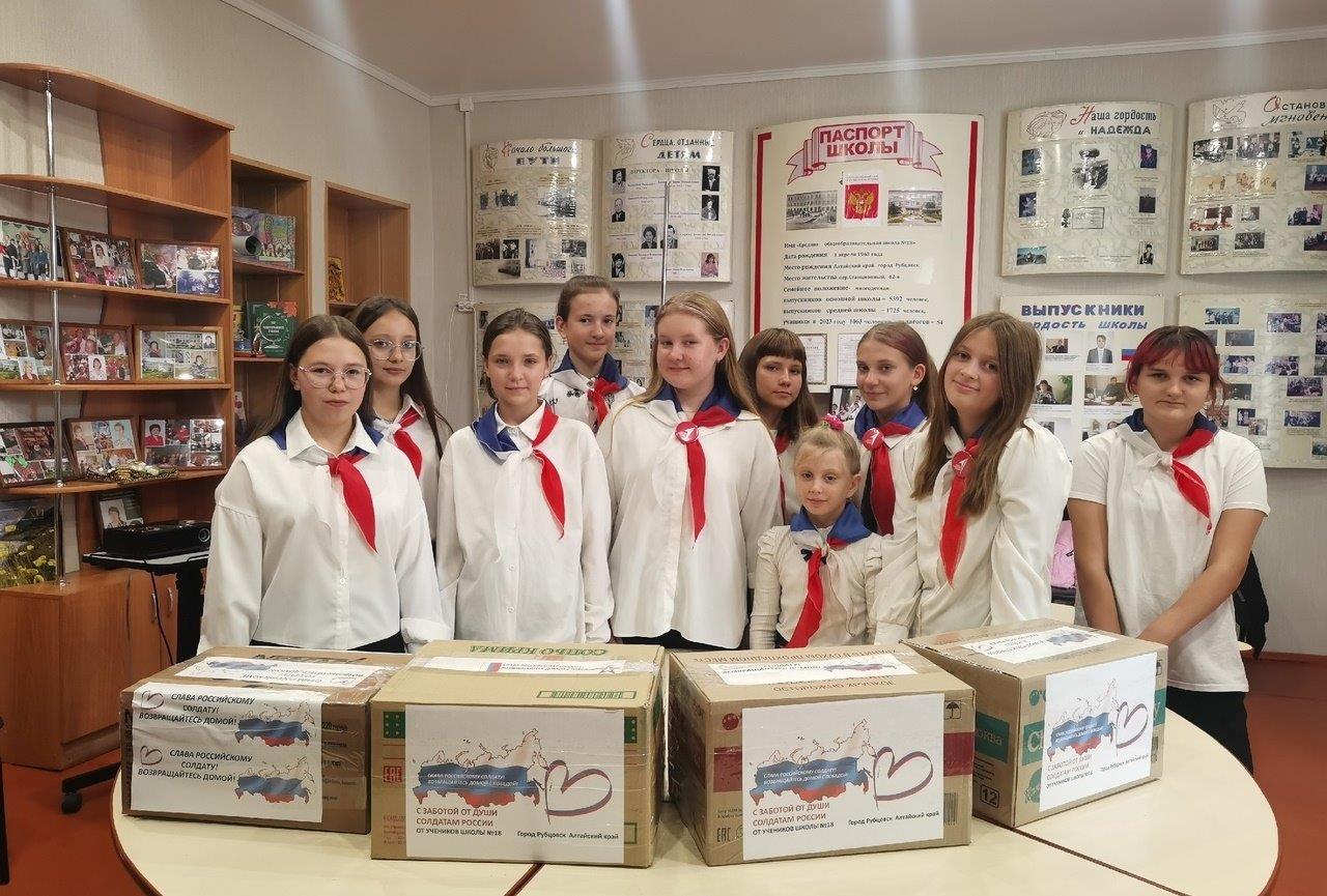 Ребята из «Движения Первых» школы № 18 под руководством советника директора по воспитанию Екатерины Телегиной приняли участие в акции по сбору гуманитарной помощи для участников СВО.
